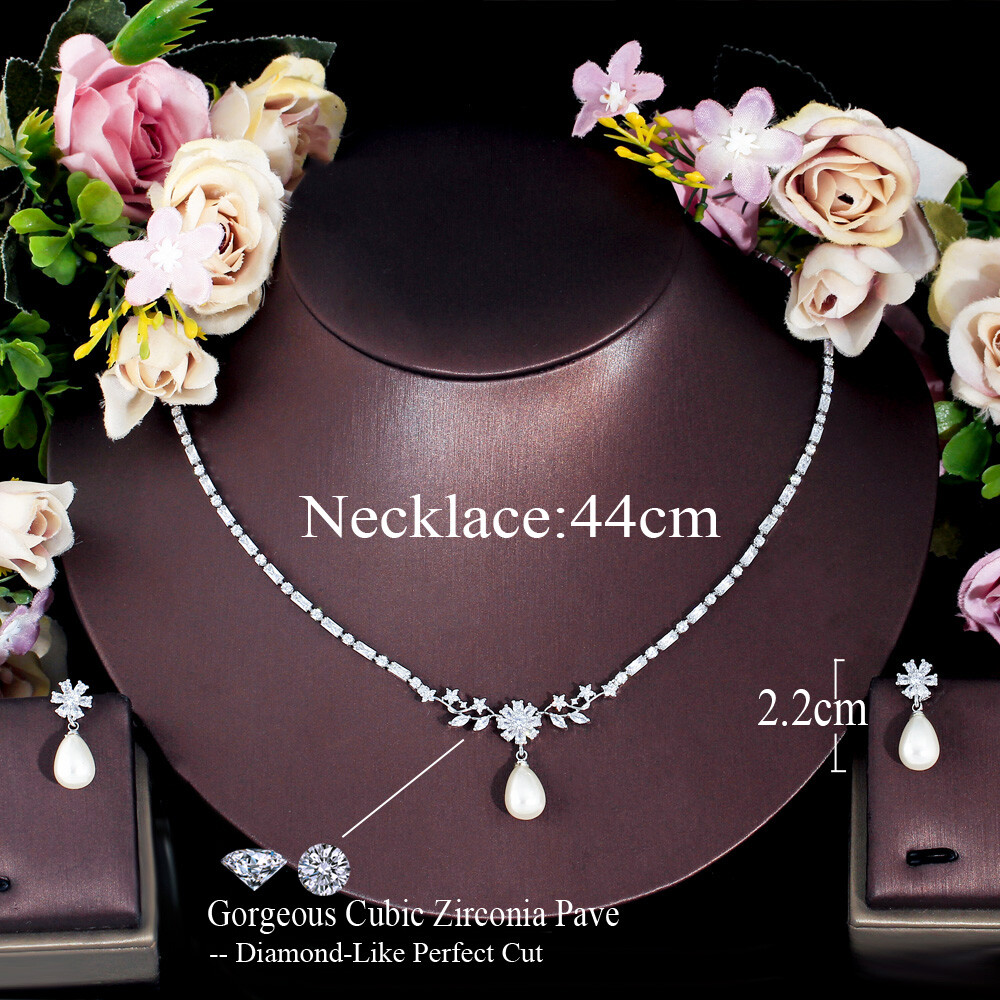 Delicate Silver Plated Pearl Drop CZ Zircon Flower Earrings Necklace Jewelry Set There’s an old saying that: Jewelry is woman’s best friend. And one appropriate luxury jewelry helps to spice up your charm and beauty. And here’s the reason why you choose us: ★ We adopts high-grade Cubic Zirconia, which displays pure and fascinating color; ★ All our items are Elaborate, Gold Plated (white gold plated/yellow gold plated/black gold plated), by which the texture is smooth and with fancy look, and will be appropriate for so many occasions; ★ Our items are with Exquisite Design, which shows your excellent taste, and could catch people’s attention easily. ★ Ideal gift for mother, wife, girlfriend, daughters, brides, bridesmaids, ect. Specification Type: Luxury Jewelry Set Stone Material: Cubic Zirconia Base Metal Material: Brass Metal Material: Silver Plated Pearl Type: White Simulated-pearl Shape: Flower Color: White Suitable Occasion: Daily, Holidays, Party, Engagement, Wedding, Anniversary, Valentine’s Day, Carnival, Performance, ect. Package Includes 1 Pair of CZ Drop Earrings 1 Piece of CZ Necklace Please note: *Please bear in mind that there might be 1~2cm difference due to manual measurement. *Our digital images are as accurate as possible. However, different monitors may cause colors to vary slightly. *We offer after-sale service, if there is any item problem, please feel free to contact us via eBay message first, your kind understanding is much appreciated. About Us Payment Shipping Returns Contact us About Us Topjewel33 is a newly-established online store which dedicates to provide excellent luxury jewelry products, such as earrings, rings, necklaces, bracelets, brooches, hair accessories, and high grade jewelry sets. We target worldwide market, and we strive for offering you unbeatable low price and satisfied customer service. Payment We accept PayPal payment only. Payment must be received within 7 days from the date of purchase. Shipping We do hope all our customers could receive the order asap, so normally, the order will be sent out within 2 working days. And as the delivery is handled by the third party, sorry that we could not guarantee which date you could receive the package. And sometimes the delivery might be a little bit delay, especially in high volume or holiday seasons. However, please don’t worry and feel free to contact us via eBay message, and we will do our best to help. And we sincerely apologize for any inconvenience may cause. Sometimes custom tax might be required, and we are afraid that it will be covered by the buyers, thank you for kind understanding. Returns We provide 30 days money back return policy. And if you have any problem with the item, please make sure the item is in the original package and feel free to contact us via eBay message first, thank you for kind understanding and cooperation. Contact us We offer customer service, if you have any problem with the item before/during/after the purchase, please feel free to contact us via eBay message, and we will get back to you asap. Thank you for your kind patience.