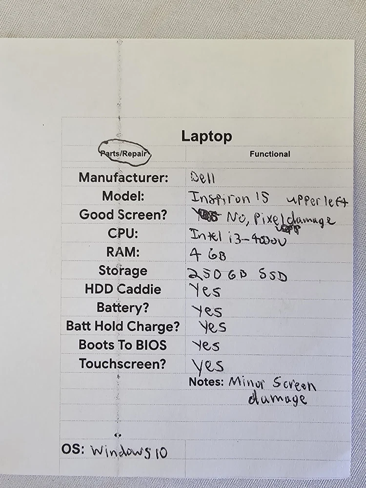I think the mail truck got lost. But, when it arrived, it was in the exact condition noted in the description. I was just looking for a donor for motherboard and screen, and got exactly what I expected. Packaged beautifully in a bed of bubble wrap. Thank you!
