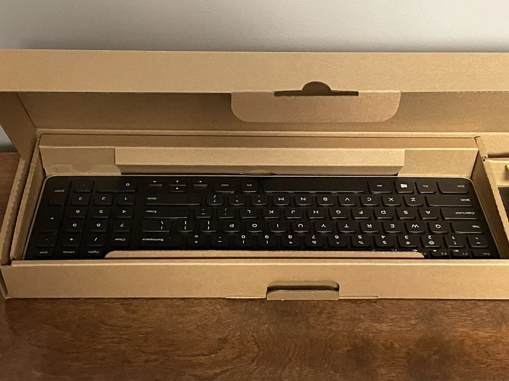 Keyboard, Mouse and USB Adapter in Box: No Manual, Paperwork or Batteries. All items are between very good and like new condition. Box does have some wear and tape as shown. Tested and works. See all photos. Fast Processing and Free Shipping