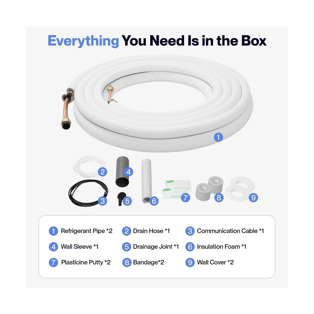 Della 25 Ft Mini Split Line Set, Includes 3/8" & 1/4" O.D. Copper Pipes with Flared Nuts and a 3/8" Thick White PE Insulated Coil, Perfect for Mini Split AC and Other HVAC Systems Description Features: Precision & Durability: 3/8" and 1/4" OD copper aluminum tubes with zero tolerance design for mini split AC. 0.5" thick walls ensure leak proof performance, durability, and excellent thermal conductivity ideal for tough environments. Complete Protection: 3/8" thick, 3 layer insulation for mini split copper aluminum lines. Features embossed polyethylene film and weather resistant foam. Flame retardant, heat insulating, and drip reducing protects walls, equipment, and extends service life. All Weather Copper Tubes: Built for -22F to 221F, compatible with all refrigerants. UV resistant coating for summer, moisture protection for winter durable and efficient in any climate. Complete Accessory Kit: Includes all essentials for easy installation refrigerant pipes, drain hose, wall sleeve, insulation foam, and more. Everything you need in one box. 24/7 Customer Support: At DELLA, we're here for you around the clock. Whether you need help with missing parts or have any other concerns, our dedicated support team is always just a message awayanytime, day or night. Product Details: Brand: Della Material: Copper, Polyethylene (PE) Color: White Product Dimensions: 300"L x 0.38"W Item Weight: 10 Pounds Nominal Wall Thickness: 0.5 inches Outside Diameter: 0.25 Inches Item Length: 300 Inches UPC Manufacturer: DELLA Item Dimensions L x W: 300"L x 0.38"W Item Weight: 10 Pounds Nominal Wall Thickness: 0.5 inches Outside Diameter: 0.25 Inches Item Length: 300 Inches Material Type: Copper, Polyethylene (PE) Color: White Brand Name: Della UPC: 192928041460 Manufacturer: DELLA Unit Count: 1.0 Count Delivery We Do Not Ship Outside of the Continental US. Return Policy All items qualify for returns within 30 days of receipt. Seller is responsible for return shipping on any item that is not damaged. Feedback We take our reputation seriously, we buy and sell online, so we understand the value of trust. If you are unsatisfied with your order, please contact us and we will work with you to resolve it to your satisfaction.