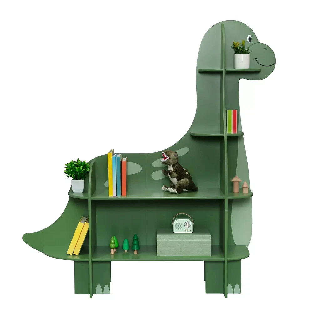 Delta Children Dinosaur Bookcase Features: Greenguard Gold Certified Multiple Shelf Sizes For Storage Includes Tip Over Restraint Wall Attachment Assembly Required Product Details The Dinosaur Bookcase by Delta Children is a creative storage solution for any child’s playroom or bedroom. There are a variety of shelves in different shapes and sizes, this bookcase provides plenty of space to hold toys, books or display décor. This bookcase includes anti-tip hardware so you can easily attach the bookcase to the wall for added safety and is Greenguard Gold Certified. Includes: Bookcase Tipover restraint Features: Engineered and tested for safety Greenguard Gold certified Bookcases includes tip over restraint (safety anchor) for you to securely attach it to your wall Made of sustainable TSCA compliant engineered wood Tested for lead and other toxic elements to meet or exceed government and ASTM safety standards Non-toxic multi-step painting process Assembly required Dimensions & Weight: 54.25" W x 12.50" L x 56" H; Weight: 40.8 lbs. General Care: Wipe with damp cloth and dry immediately Specifications Bookcase - Weight 40.8 lb. Bookcase Dimensions: W x L x H 54.25 in. x 12.5 in. x 56 in. Brand Delta Children Color Green Frame Material Wood Frame Material Details Composite Wood Number of Pieces 1 Piece