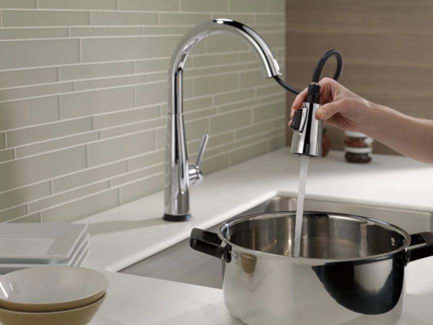 Powered by Frooition Top Products Kitchen Bathroom Lighting Fans Hardware Decor & Organization Delta 9113TV-DST Essa VoiceIQ Voice Activated Pull Down Kitchen Faucet with On / Off Touch Activation and Magnetic Docking Spray Head Overview Item Description Delta 9113TV-DST Features: Faucet body constructed of zinc VoiceIQ™ Technology links proven platforms – Amazon® Alexa® or Google® Assistant-enabled devices and Delta Touch2O Technology faucets – into a next-generation solution Touchless voice activation can turn the water on and off, pour specific amounts, and even warm up using your voice-enabled device Hand wash feature provides the proper timing for lathering, scrubbing, and rinsing your hands Requires 6 AA (included) or 6 C batteries (optional) Includes A/C adapter EP102157 For installation and continued operation of VoiceIQ™ Technology, a wall outlet underneath the sink which isn’t controlled by a switch is required Pull-down spray with aerated stream or spray Toggle switch to switch between spray modes Swivel spout (rotates 360 degrees) which allows for greater access to all areas of the sink Includes Euromotion ceramic disc cartridge Includes optional 10-1/4" deck plate (8" centers) for 3-hole installations Mounting hardware included ADA compliant Low lead compliant Assembled in America Delta 9113TV-DST Technologies and Benefits: VoiceIQ: Voice Activation can turn the water on and off, pour specific amounts, and even warm up using your voice enabled device. Allows for six personal water amount settings. Amazon® Alexa® or Google® Assistant-enabled device required DIAMOND Seal: Using diamonds, the hardest naturally-occurring substance on Earth, we’ve engineered a faucet that’s longer lasting, leak-free and less hassle to install. MagnaTite: Delta MagnaTite Docking uses a powerful integrated magnet to snap your faucet spray wand precisely into place and hold it there so it stays docked when not in use and doesn’t droop over time. Touch-Clean: The Delta® soft, rubber Touch-Clean® Spray Holes make it easy to wipe away unsightly calcium and lime buildup with the touch of a finger, helping prevent your product from developing a mineral blockage which could reduce water flow. While other kitchen faucets, shower heads and hand showers may require chemical cleaners and soaking time to dissolve mineral buildup, Delta products featuring Touch-Clean Spray Holes can be simply wiped clean for improved performance and an instantly refreshed look. Touch2O: Sometimes your hands could use a hand, which is why we designed Delta's Touch2O® Technology for the kitchen. With a simple touch anywhere on the spout or handle using your wrist or forearm, you can start or stop the flow of water from your faucet. The temperature and flow rate are easily set by your faucet handle for simple operation, designed to make everyday kitchen tasks a little easier. The built-in Delta TempSense™ LED light at the base of the faucet indicates the temperature of the water, eliminating any possible surprises or discomfort. Touch it on. Touch it off. Experience the convenience and control of Delta kitchen faucets featuring Touch2O Technology. Delta 9113TV-DST Specifications: Height: 16" (deck to top of faucet) Spout Height: 9-5/8" (deck to spout outlet) Spout Reach: 9-3/8" (center of faucet body to center of spout outlet) Flow Rate: 1.8 gallons-per-minute Faucet Holes: Single Hole Faucet Hole Size: 1-1/4" Max Deck Thickness: 1-1/2" (cannot mount on thicker decks) Escutcheon Width: 10-1/4" (left to right) Uses 6 AA (included) or 6 C (optional) batteries Optional A/C adapter EP102157 not included For installation and continued operation of VoiceIQ™ Technology, a wall outlet underneath the sink which isn’t controlled by a switch is required About Delta® VoiceIQ™ Technology: Amazon® Alexa® or Google® Assistant-enabled device to give you exactly the amount of water you need with features like metered dispensing and custom container commands. Simply ask your faucet to dispense one cup, six ounces, a gallon or just about any other amount you could need. Custom container commands make everyday tasks easier, like filling a coffee pot or dog bowl, while thoughtful features like water warm-up and voice-activated on/off lend a hand when yours are full. Take command of your kitchen with a VoiceIQ Faucet: a revolutionary kitchen faucet that thinks on demand. Amazon and Alexa are registered trademarks of Amazon Technologies, Inc. Google Assistant is a registered trademark of Google LLC. VoiceIQ Technology is not created by, affiliated with, or supported by Google LLC VoiceIQ Technology is not created by, affiliated with, or supported by Amazon Technologies, Inc. Why Choose BuildInc? OUR PROMISE TO YOU About Us At Build, we promise to provide the best selection we can, most competitive pricing, and unmatched customer service. Our store has quality home improvement products from trusted manufacturers like Moen, American Standard, Delta, Kraus, Kichler, Progress Lighting, Schlage, Kwikset, Baldwin, Broan, NuTone, Air King, and Rev-A-Shelf. With over 200,000 home improvement products for you to choose from, we have just what you need to get your project done. Fast & Free Shipping We promise to make it our priority to get you your items as fast as we can. We ship from 440 warehouses around the country, ensuring that your product will get to you as soon as possible. We know you're eager to get your hands on your new purchase, we would be too. As a bonus, most items ship for free. Returns We are happy to accept returns of unused or defective items for a refund within 30 days from the date of delivery. For returns outside 30 days, please contact our Customer Service team to go over our options. For full details, please view the Shipping and Payments tab above. To initiate a return simply go to the eBay Returns Portal and submit a return request. We ask that all items be returned with all original components via 