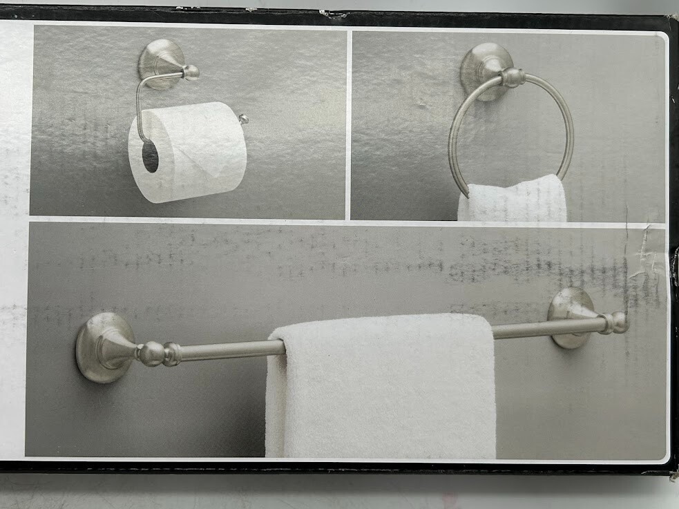 This is a NEW OPEN BOX item. The Greenwich II Bath Collection by Delta blends classic design with modern convenience , inspired by American casual décor . This 3-piece set includes a 24-inch towel bar, an open square toilet paper holder, and a round towel ring , making it an ideal upgrade for any bathroom. The SpotShield brushed nickel finish resists water spots, fingerprints, and stains, ensuring a clean and polished look for years to come. Key Features Complete 3-Piece Set – Includes a 24-inch towel bar, toilet paper holder, and towel ring for a cohesive and functional bathroom upgrade. SpotShield Brushed Nickel Finish – A warm, muted silver tone with earthy undertones , designed to resist water spots, fingerprints, and stains . Durable & Reliable – Crafted from multiple metals for strength and longevity . Wall-Mounted Design – Maximizes space while keeping towels and essentials easily accessible . Easy Installation – Includes all necessary mounting hardware, a template, and step-by-step instructions for a hassle-free setup . Dimensions Towel Bar: 2.76" H x 28.50" L x 3.49" D Toilet Paper Holder: 4.84" H x 6.45" L x 3.43" D Towel Ring: 7.53" H x 6.38" L x 2.74" D Why Choose the Greenwich II Bath Accessory Set? Provides a stylish and practical bathroom upgrade. SpotShield technology keeps hardware cleaner for longer . Durable construction ensures years of reliable use . Easy to install with included hardware and mounting template. Complete your bathroom with other coordinating pieces from the Delta Greenwich II Collection (sold separately) for a harmonized, modern look . We take great care to inspect all items and ensure they are accurately described. Should you have any issues with your purchase, please let us know immediately. We are committed to resolving any concerns promptly and to your satisfaction. Our small business truly appreciates your patronage.