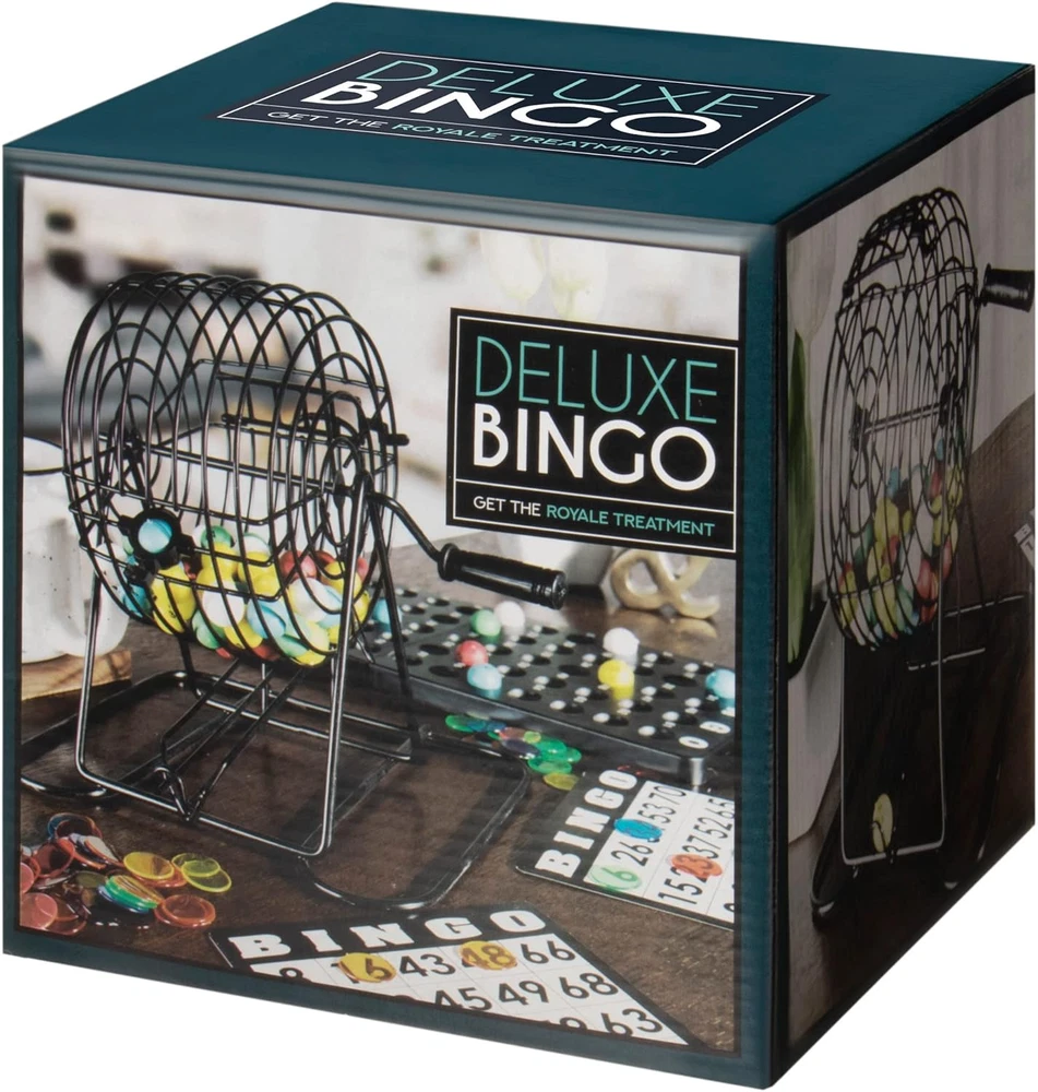 Free Expansion Set - Most starter Bingo sets offer just 18 bingo cards and 100 bingo chips, barely enough for 4 games of cover-all. Our Deluxe Bingo Set with Free Expansion Pack includes an additional 32 cards and 200 chips. That's a total of 50 cards and 300 chips! More Pieces, More Players, More Bingo - Our Deluxe Bingo game set is great for large groups, parties, classrooms, or experienced players playing multiple cards at once Pedal to the Metal - Our metal Bingo cage is superior to plastic cages. It spins smoothly and won't crack with use. And, instead of flimsy paper, our Bingo Cards are printed on reusable card stock Easy Reading - Our colorful Bingo Balls have a proprietary clear coating that competitors don't, which prevents the letters and numbers printed on from rubbing off over time Why You'll Love It - Because it suits so many players, our Deluxe Bingo Set is perfect for community centers, school classrooms, retirement homes, firehalls, family games for Christmas, game night, anywhere a game of Bingo is sure to get started Product Description More Pieces. More Players. More Bingo. This deluxe Bingo Game is ideal for larger parties and groups, offering more playing pieces than most sets. Each luxury set comes with 50 Bingo cards, 300 Bingo chips, a Bingo board, a metal cage, 75 colorful plastic balls and instructions for different Bingo game variations. The Bingo board is made from two sturdy plastic pieces that hook together at the top and bottom. Each board measures 13 inches long and 5.5 inches wide. The boards hold a combined total of 60 plastic balls, each measuring 0.33 inches in diameter. Why You'll Love It: Our superior quality, metal Bingo cage is simple to use. Just give it a spin and watch as the balls roll down the metal slot for number callouts. The cage is 6" tall, including the base. The Bingo cards are made from heavy cardboard, measuring 4.88" x 5.25", making them highly durable and easy to read. You can use and reuse the cards after each game. Our set packs 300 multi-color Bingo chips to go alongside the 50 cards, while most Bingo sets rely on cheap fold-over numbers. Includes Bingo Boards, Balls, and Cage! There are 50 blue Bingo cards included in each set, along with 300 multi-color Bingo chips, enough for 12-15 players to play. For BIG Bingo Groups! Use the 300 Bingo chips, purchase more chips, or use anything for extra pieces, and you're ready to host a massive 50 player Bingo game. Easy to Read The brightly-colored Bingo balls feature jumbo-sized numbering for easy reading. There are 15 balls of each red, blue, green, yellow, and white, 75 balls in total. It's becoming a prize possession of many Bingo enthusiasts and board gamers alike. EVERYTHING You Need for Bingo Night Enough Cards for 50 Players 300 Multi-Color Chips 75 Total Bingo Balls in 5 Colors! The King of Bingo! From bingo markers to entire bingo game sets, Royal Bingo Supplies covers all needs related to playing bingo from full sets with cages, to even replacement balls and counters in case you're running low. Royal Bingo Supplies believes that the game of bingo brings friends and Families together. When you buy a product from Royal Bingo Supplies, you can always count on a quality item that will enhance any bingo playing experience!