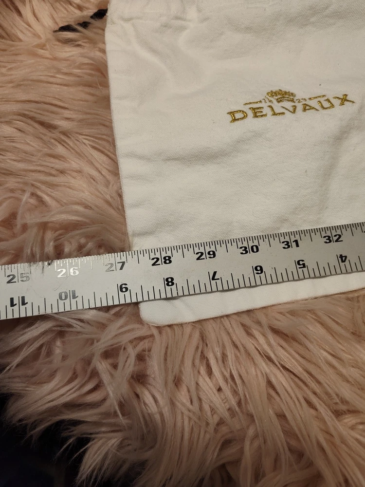 The Delvaux Dust Bag is a stylish and luxurious accessory designed for women who appreciate high-end fashion. Featuring the brand's iconic golden embossed letters, this white cotton dustbag is lined with a tweed fabric type, adding a touch of luxury to any handbag or accessory. With a vintage style and designer theme, this 9" x 9" dust bag is both fashionable and practical, perfect for protecting and storing your favorite designer items with a hint of elegance.