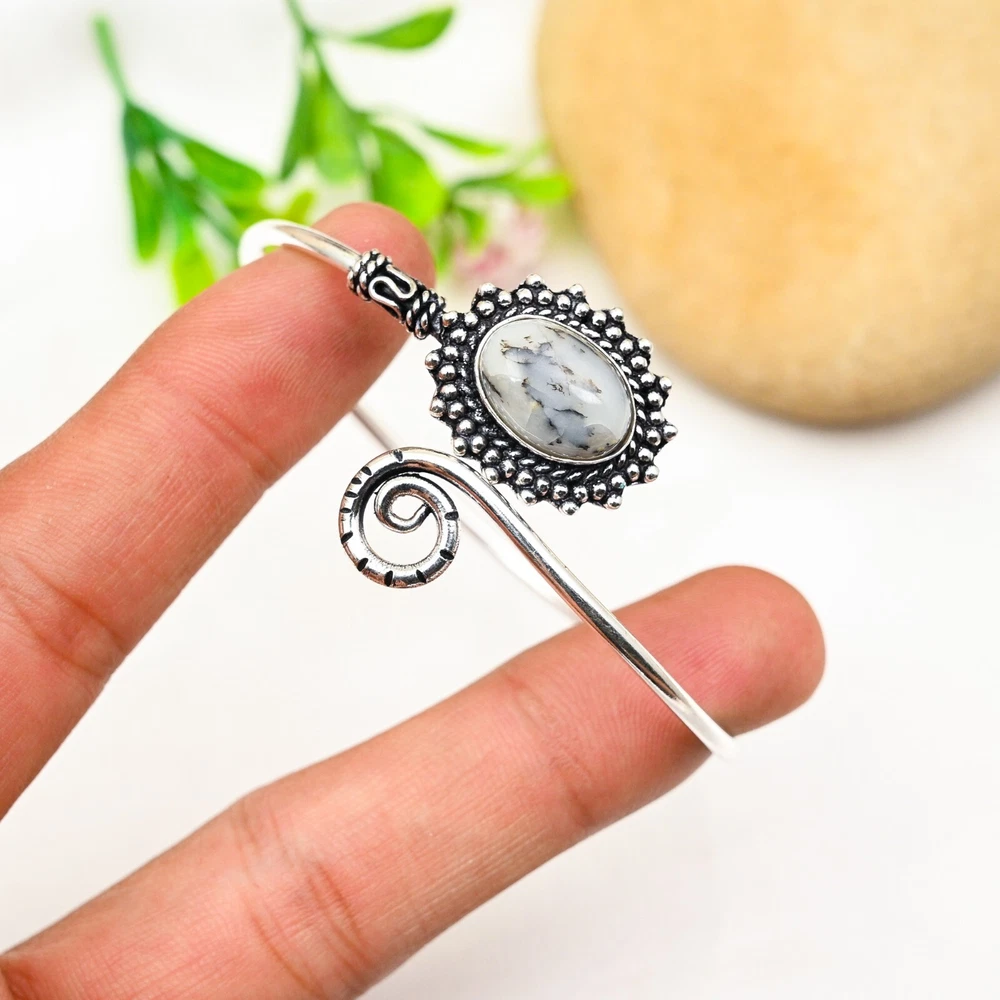 HomeDendritic Opal Gemstone Bangle 925 Sterling Silver Handmade Jewelry Party Gift