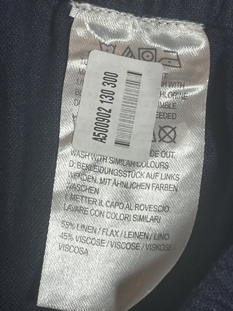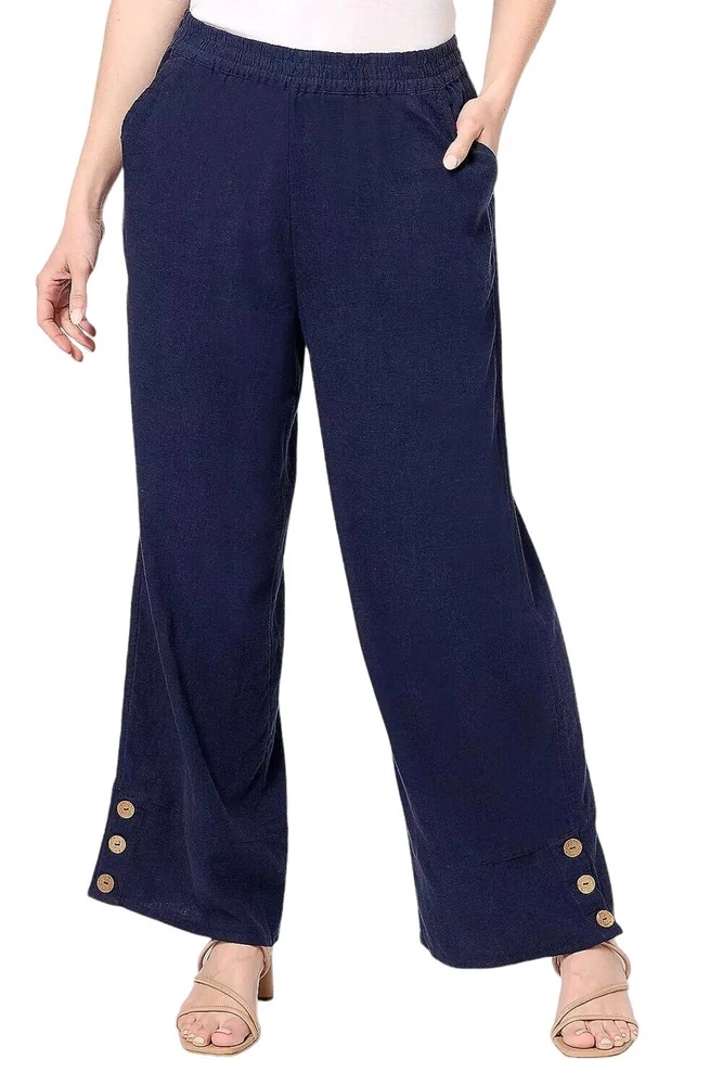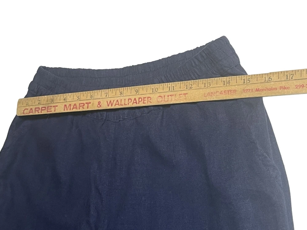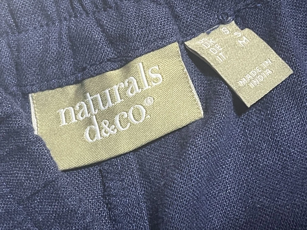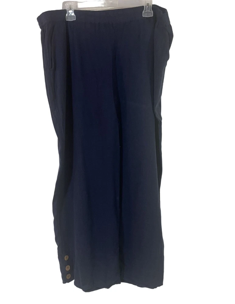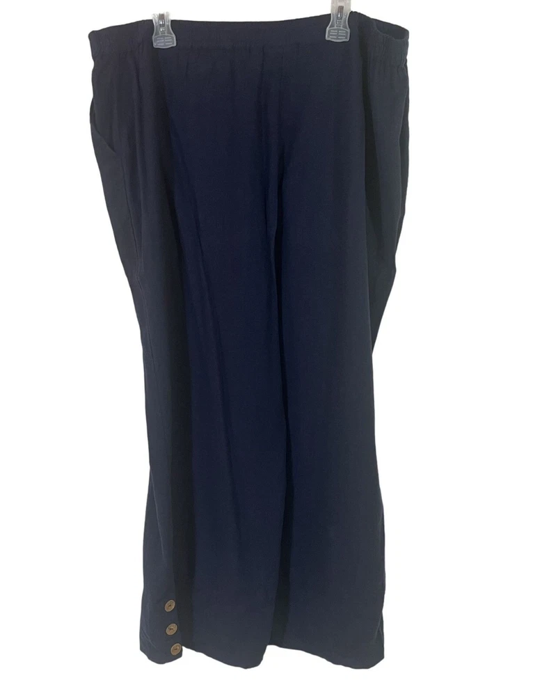 Country/Region of Manufacture: India Features: Side Button Ankle Brand: Denim & Co. Handmade: No Style: Ankle Accents: Button Material: Linen, 55% linen/45% viscose Fit: Semi-fitted Vintage: No Closure: Elastic waist Type: Pants Color: Navy Size: S Front Type: Flat Front Occasion: Travel Fabric Type: Woven Rise: slightly below the waist Size Type: Regular Leg Style: Wide-Leg Personalize: No Garment Care: Machine Washable Seller Notes: “Like new!” Pattern: Solid Inseam: 27 1/2 Season: Fall, Spring, Summer, Winter Department: Women