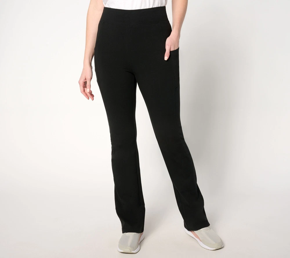 Denim & Co. Women's Plus Sz Pants 1X Active Regular Duo Stretch Black A649599