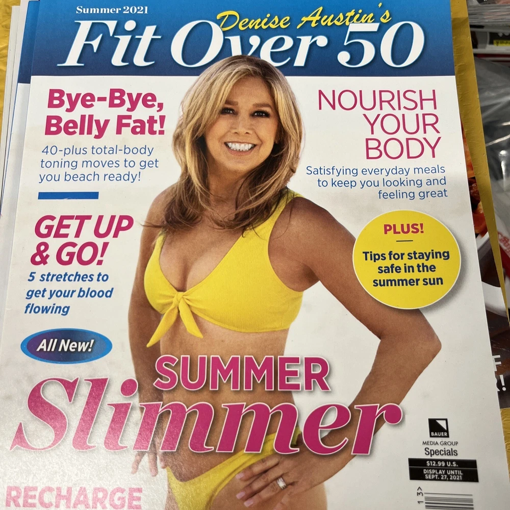 Publication Name: Denise Austin’s Fit Over 50 Country/Region of Manufacture: United States Language: English Publication Year: 2021 Publication Frequency: Quarterly Topic: Fitness, Healthy Food Recipes, Exercising Publication Month: July, August, June UPC: 0196112742546 gtin13: 0196112742546 Genre: Health, Activity, Exercise