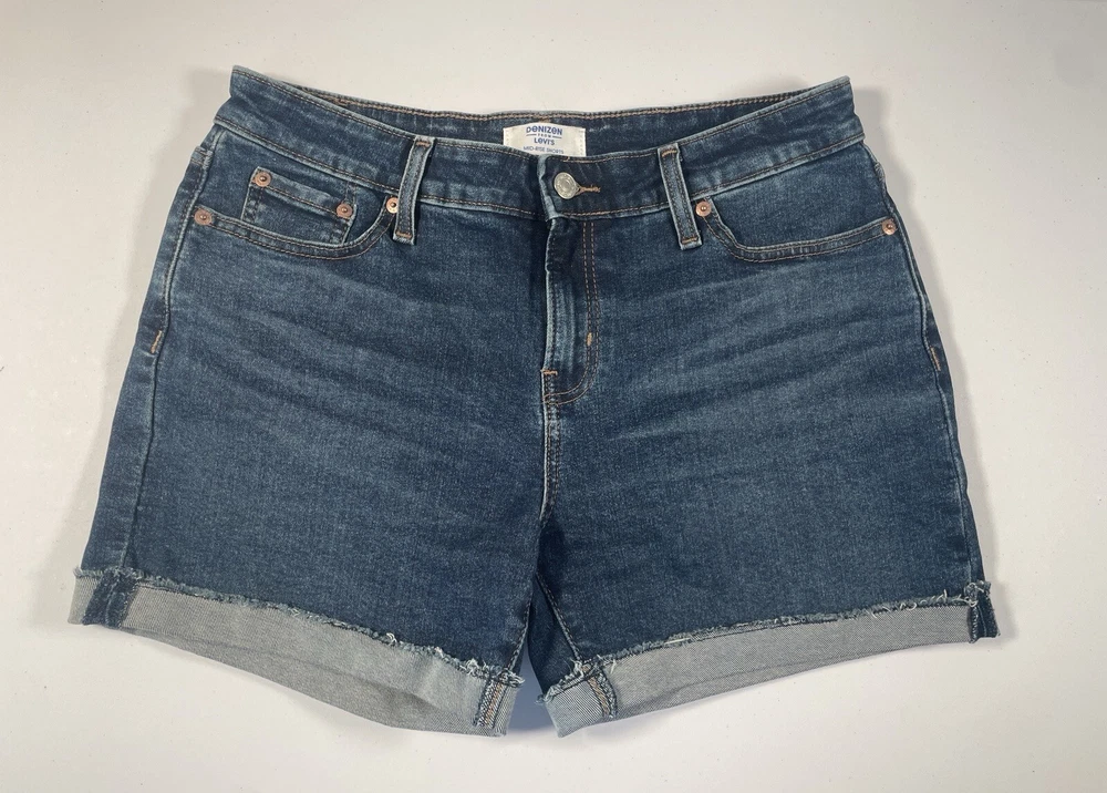 Levi’s Denizen Mid-Rise Cuffed Denim Shorts Size 8/W29 Measurements in photos