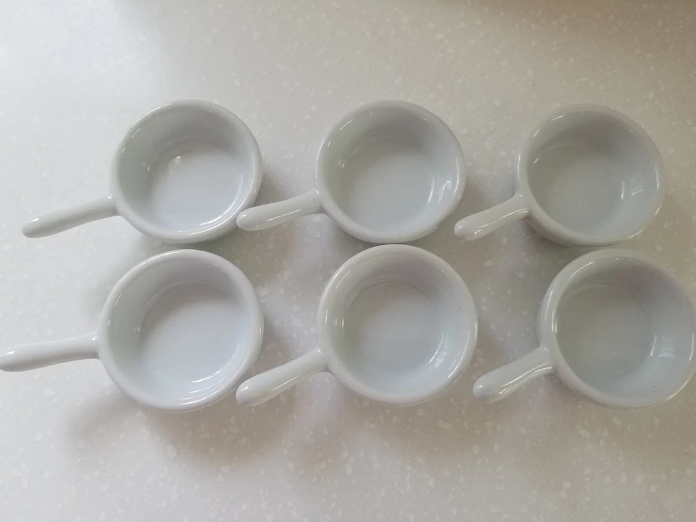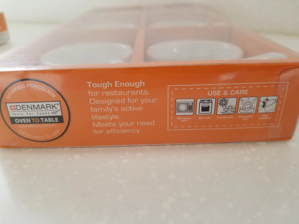 This set of twelve round dipping bowls is perfect for any occasion. The bowls are made of high-quality porcelain and are designed to withstand oven, freezer, microwave, and dishwasher use. The smooth finish and solid pattern make them a great addition to any kitchen or dining room. Each bowl has a diameter of 6 inches and is perfect for serving dips, sauces, or other small dishes. The set is ideal for hosting parties or for everyday use. The bowls are branded with the Denmark logo and are sure to impress your guests. Brand new in boxes. Opened one box for photos. Please view photos.