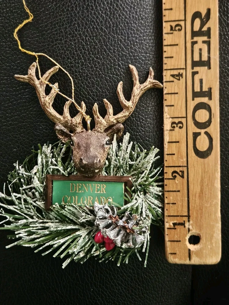 HomeDenver Colorado Reindeer with Wreath Deer Head Antlers Christmas Ornament