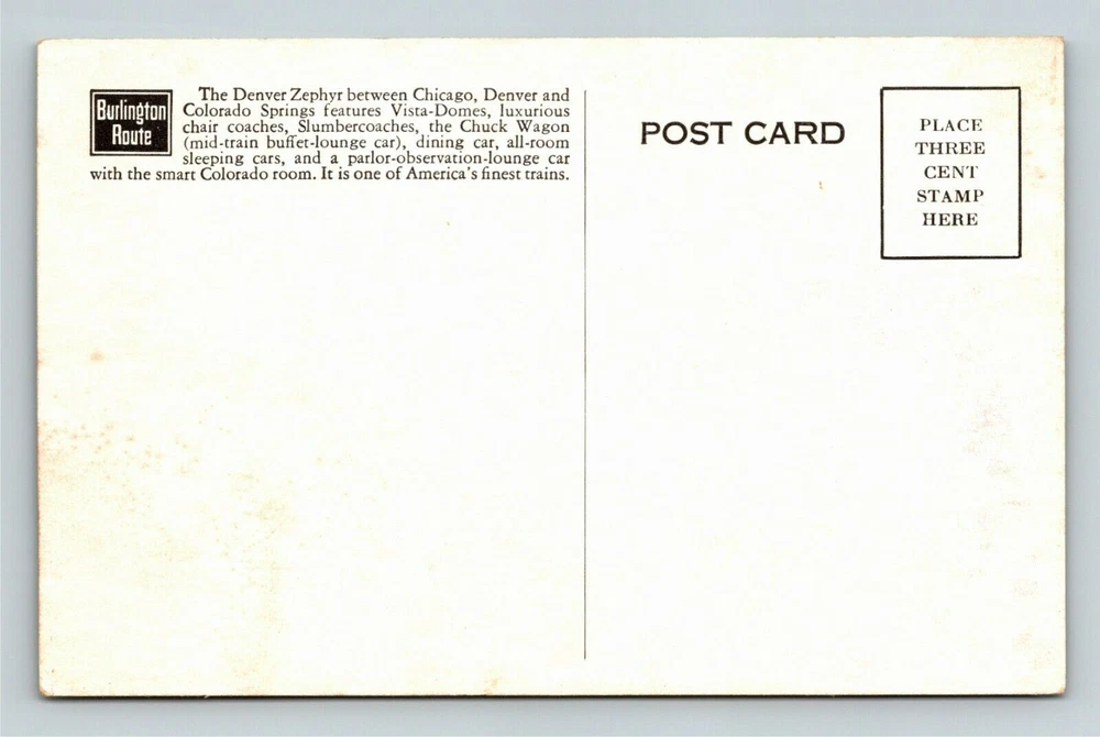 Theme: Transportation Region: N/A Subject: Passenger Train Type: Printed (Lithograph) Era: Chrome (1939- Present ) Postage Condition: Unposted Original/Licensed Reprint: Original Continent: North America City: N/A Unit of Sale: Single Unit Country/Region of Manufacture: United States Features: Chrome Country: USA