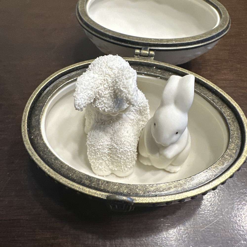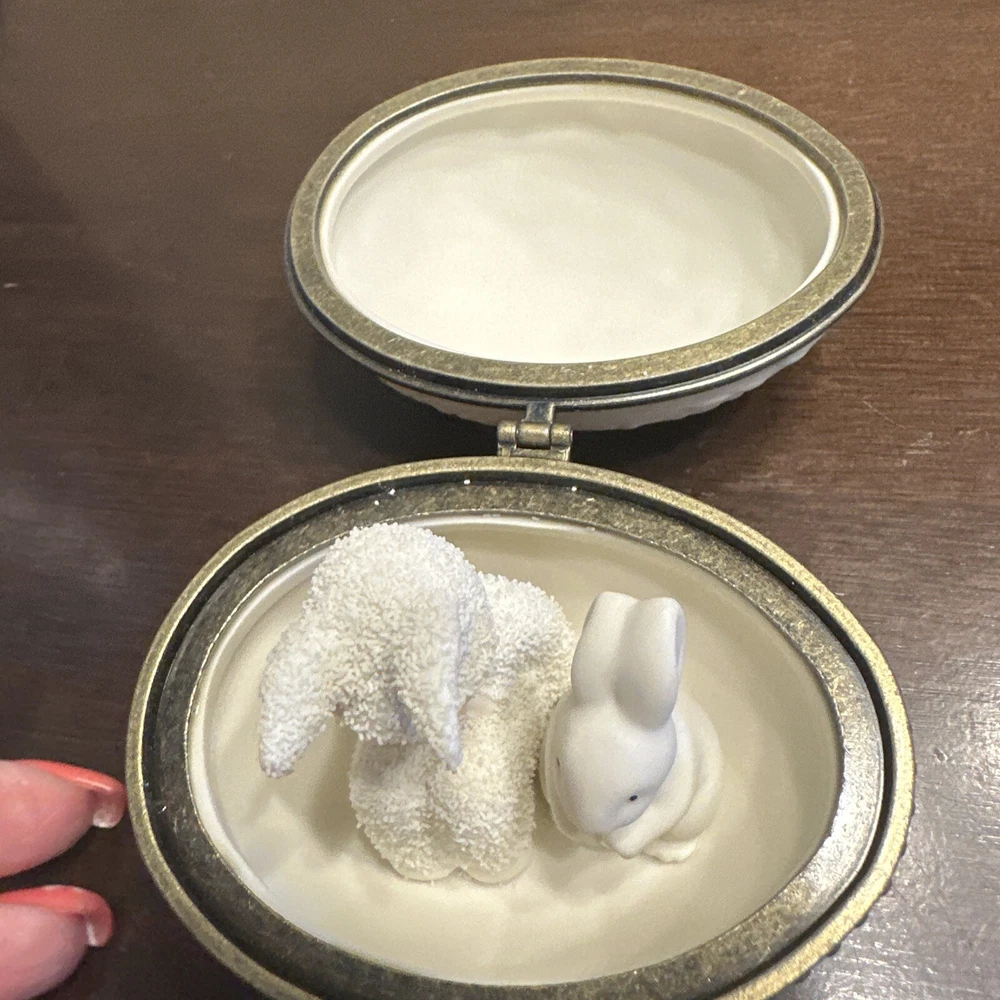Absolutely adorable! This charming Snowbabies trinket box is a must-have for collectors. The delicate porcelain egg has a lovely matte finish and feels special with the artist’s signature. Perfect size for small treasures, and the Easter theme makes it a sweet seasonal display piece. Comes nicely boxed—great condition for a vintage find! Highly recommend for Snowbabies fans or anyone who loves timeless holiday decor.