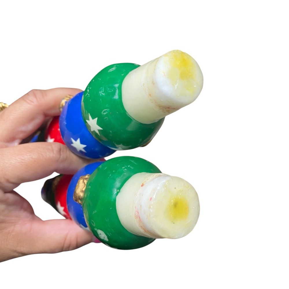 Department 56 (2) Vintage Christmas Taper Candles Colorful Ornament Stack Vintage set of 2 candles with colorful round ornament shape Color in pics may vary due to lighting and/or monitor settings Approx. 10" tall SHOP POLICIES * All items ship within 1-3 business days (I always try to ship by next business day) * This item is used vintage/pre-loved * Any defects (if any) are noted and shown in the photos * All sales are final * Please review the description/pictures and ask questions before purchasing