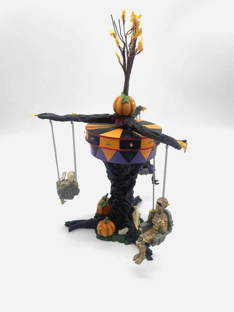 Department 56 Halloween Swinging Ghoulies Village Accessories 53133 - READ. Condition is For Parts or Repair. Lights works well but swinging mechanism is not functional. Please see photos for more details.