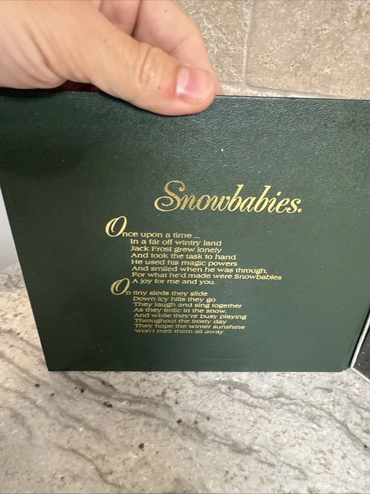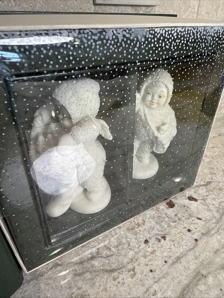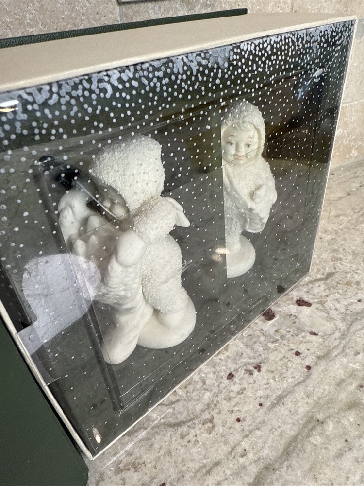 This set of two vintage figurines from Department 56's Snow Babies collection is the perfect addition to your winter decor. The lovable snowbabies are depicted giving hugs and kisses, and are sure to bring a smile to your face. Made with high-quality materials, these figurines are in their original packaging and have never been opened. The intricate details and charming design make these Snow Babies figurines a must-have for collectors and fans of winter decor. Add them to your collection or display them prominently in your home to bring a touch of warmth and nostalgia to any room.