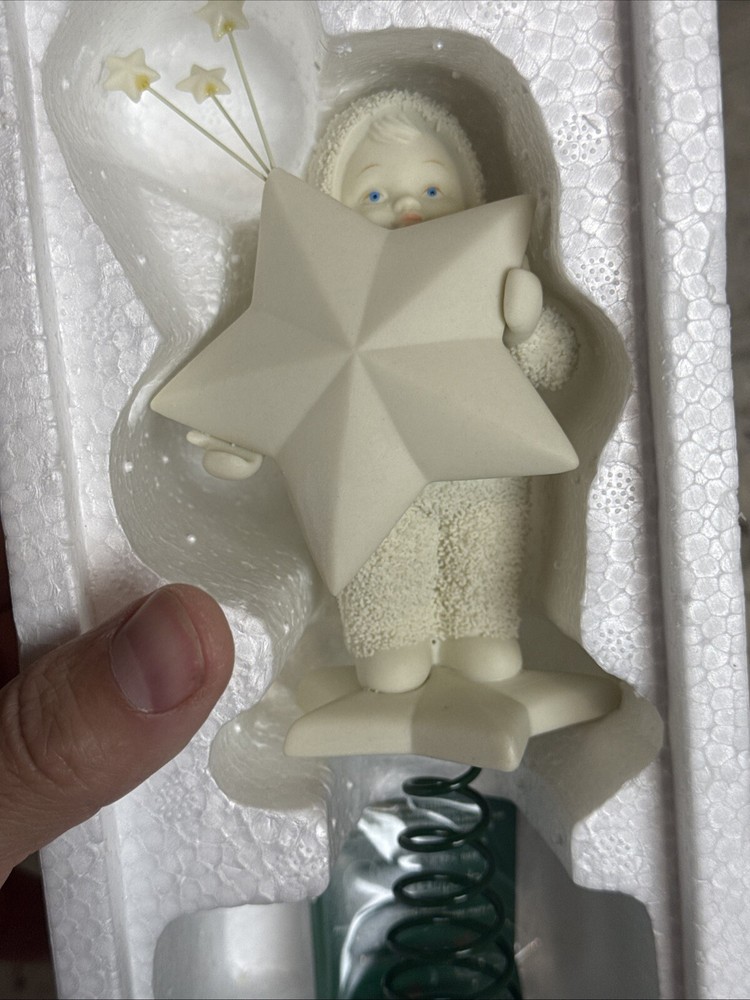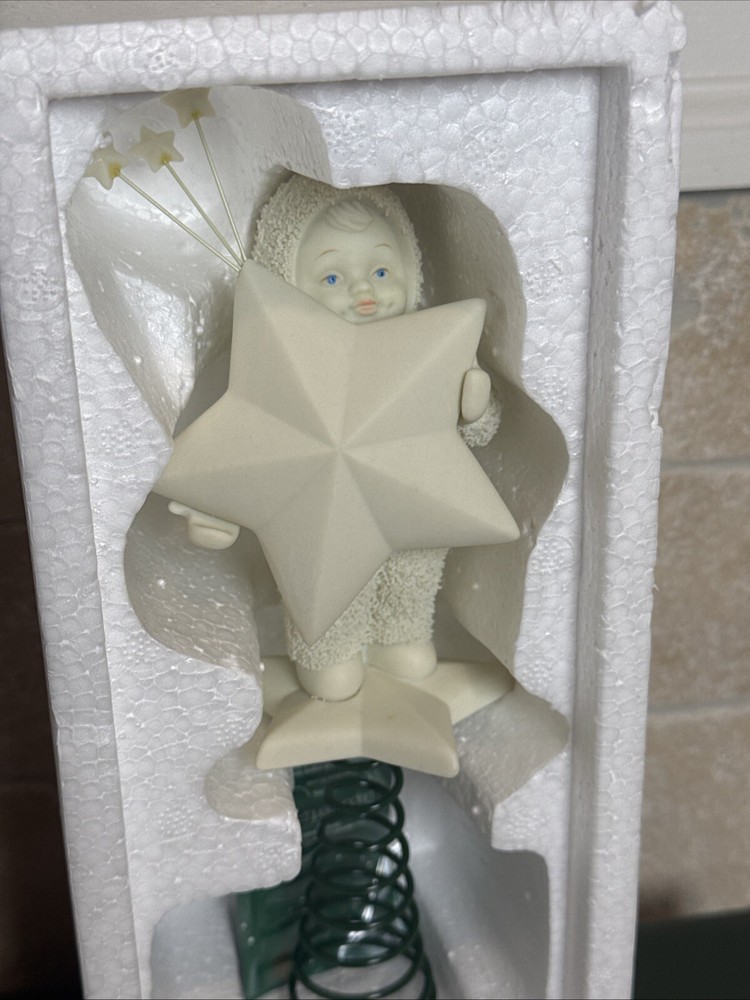 Add a touch of vintage charm to your Christmas tree with this Department 56 Snowbabies 68862 I'm The Star Atop Your Tree Treetopper. The white star-shaped topper is perfect for any Snowbabies collector and comes with a set that includes one tree. The treetopper is designed to be the star atop your tree, making it a unique and special addition to your holiday decor. Celebrate the occasion of Christmas with this one-of-a-kind treetopper that features the iconic Department 56 brand. The Snowbabies collection is known for its delicate and intricate designs, making this topper a perfect fit for any tree. Whether you're a collector or just looking for a unique holiday decoration, this treetopper is sure to make a statement.