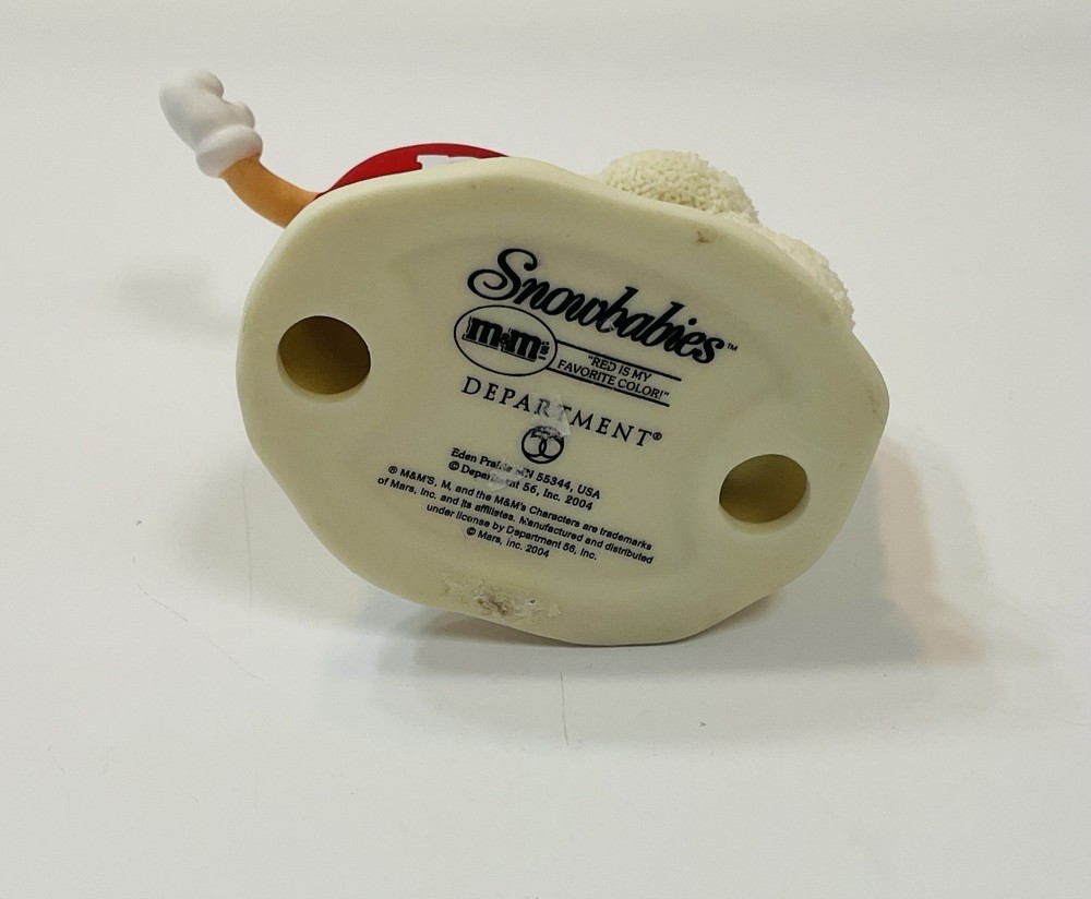 The Department 56 Snowbabies M&M's Candy Red Is My Favorite Color Figurine is a small ceramic and porcelain figurine from the Snowbabies collection. This 2004 figurine features a red candy design, making it a perfect addition for Christmas decor. The textured finish adds a unique touch to this piece, which celebrates the M&M brand.