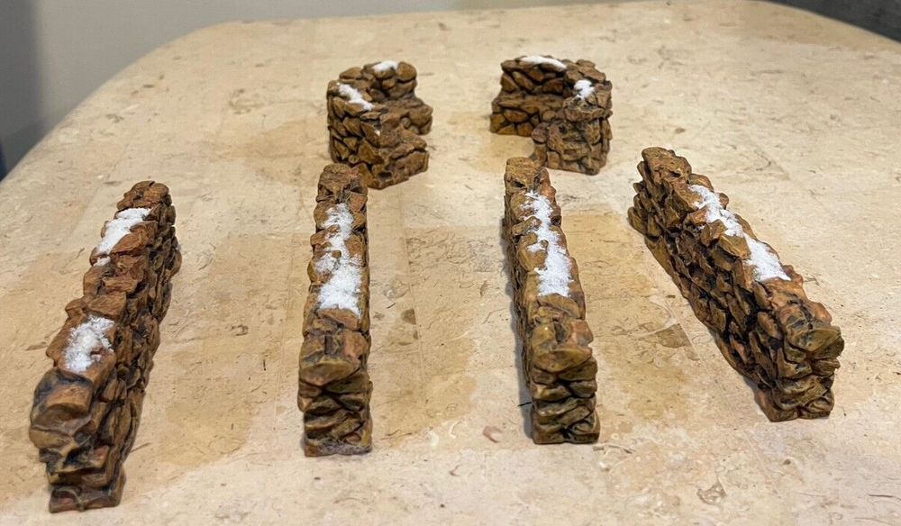 Department 56 Snowy Rock Wall - Set of 6: 4 straight and 2 curved -No Box