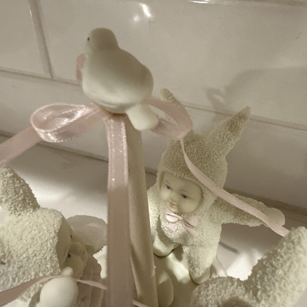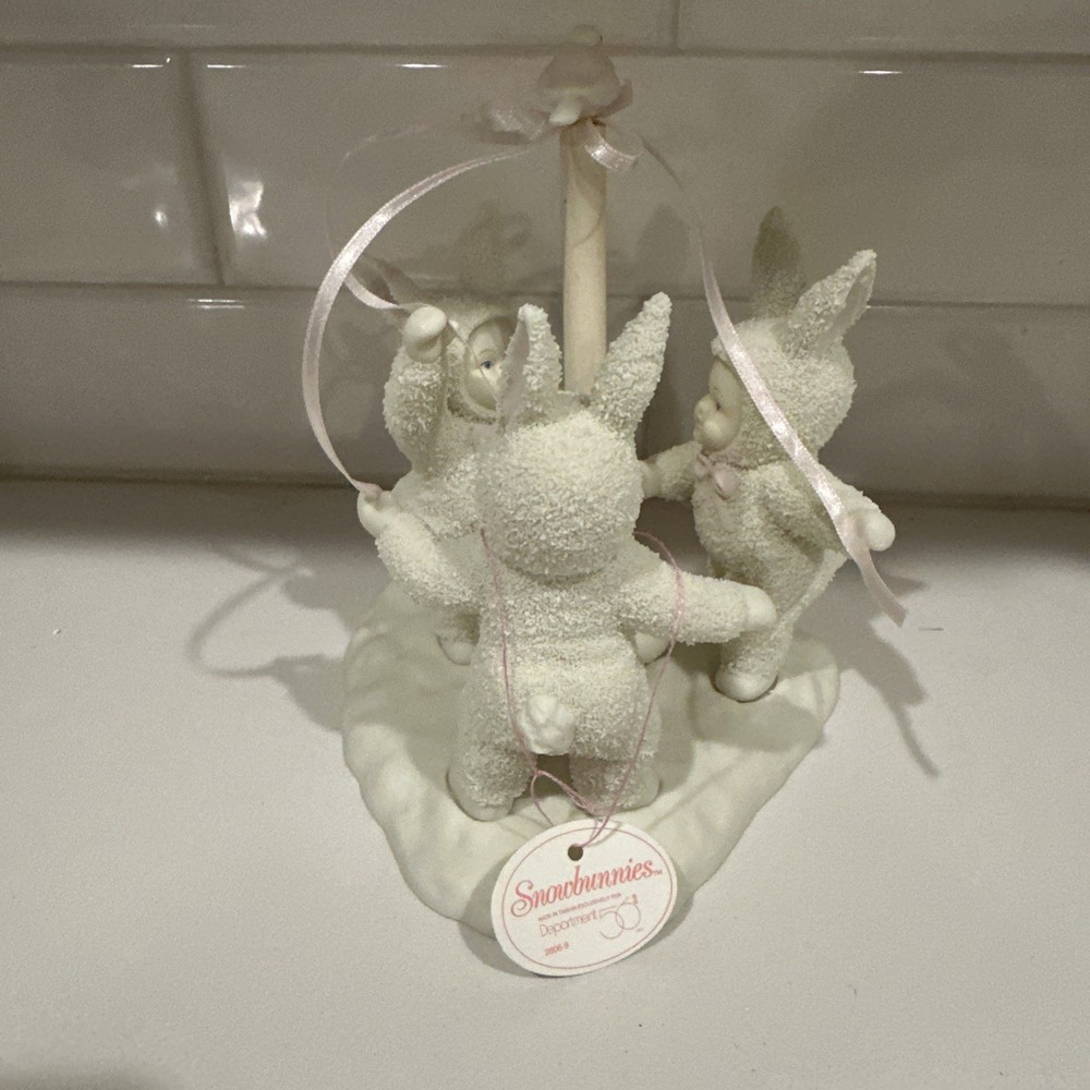 Add a touch of springtime to your collection with this charming Department 56 Snowbunnies figurine. The TRA-LA-LA piece features three bunnies playing music, with a textured finish that adds depth and detail to the ceramic and porcelain figurine. The white bunnies are perfect for Easter or any springtime occasion, and the figurine comes in its original box for safekeeping. Made in Taiwan, this collectible piece is sure to delight adults and children alike. The Snowbunnies collection is a beloved seasonal theme, and this figurine is no exception. Perfect for display on a mantle or bookshelf, this piece will bring a smile to anyone's face.
