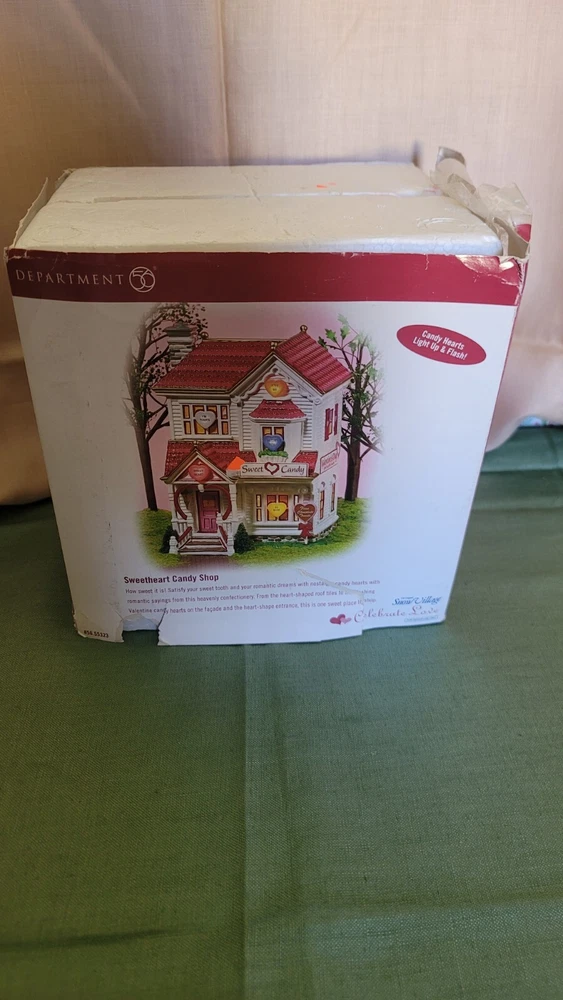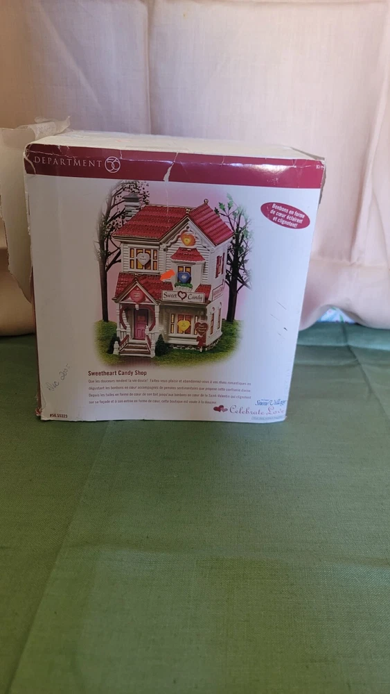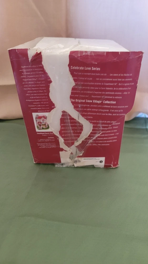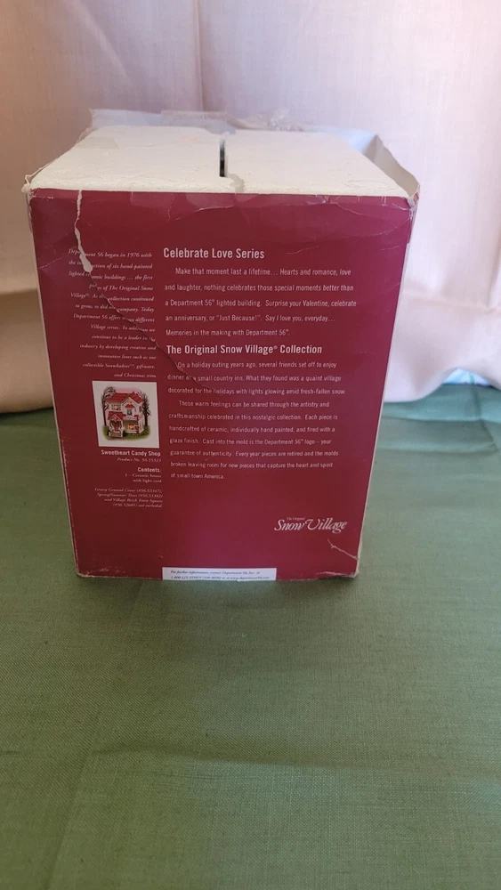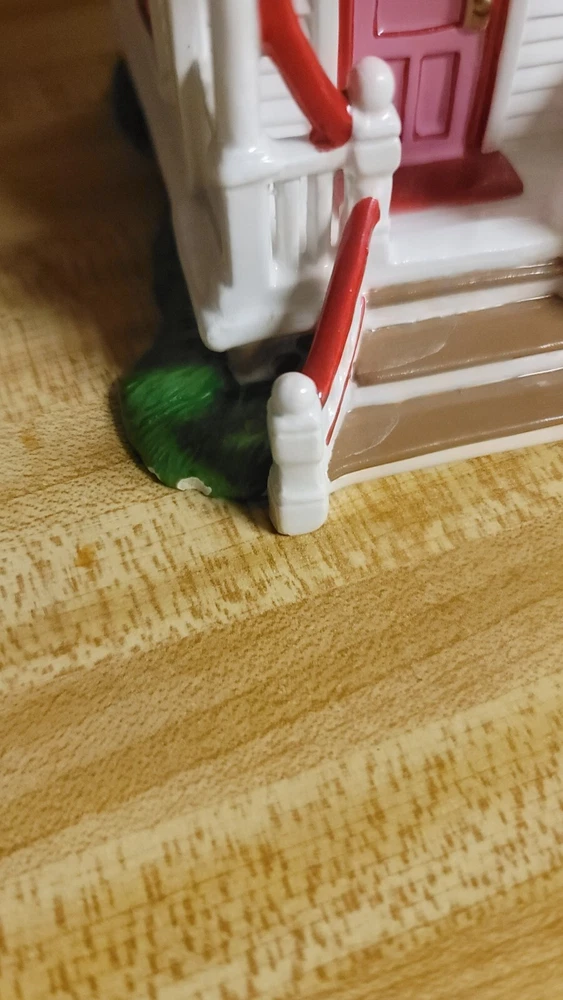 The building is missing 1 tree and is not on the model. It also has a chip on it as well. I'm not sure if it lights up at all. Need plug to make it fully work. (Please see images for greater details.) It is missing the 3V DC Power Adapter, you will have to buy that separately from Department 56's website. Here is the direct link to buy it for $15.95 - https://department56.com/collections/replacement-parts/products/replacement-adapter-3v-dc-650ma-white-male-aux-clip ************* Please make sure you understand that you will need to buy the DC Power adapter for the lighting.*************** Comes in original box and styrofoam packaging.