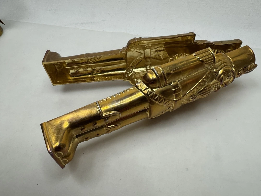 This Department 56 Toy Soldier Brass 8" Nutcracker is a vintage collectible that will add a touch of elegance to your Christmas decor. Made of high-quality brass, this nutcracker is intricately designed with a boxing subject and comes with a vintage look that will make it stand out in your collection. The nutcracker is perfect for collectors and enthusiasts of all ages and will make a great addition to any holiday display.