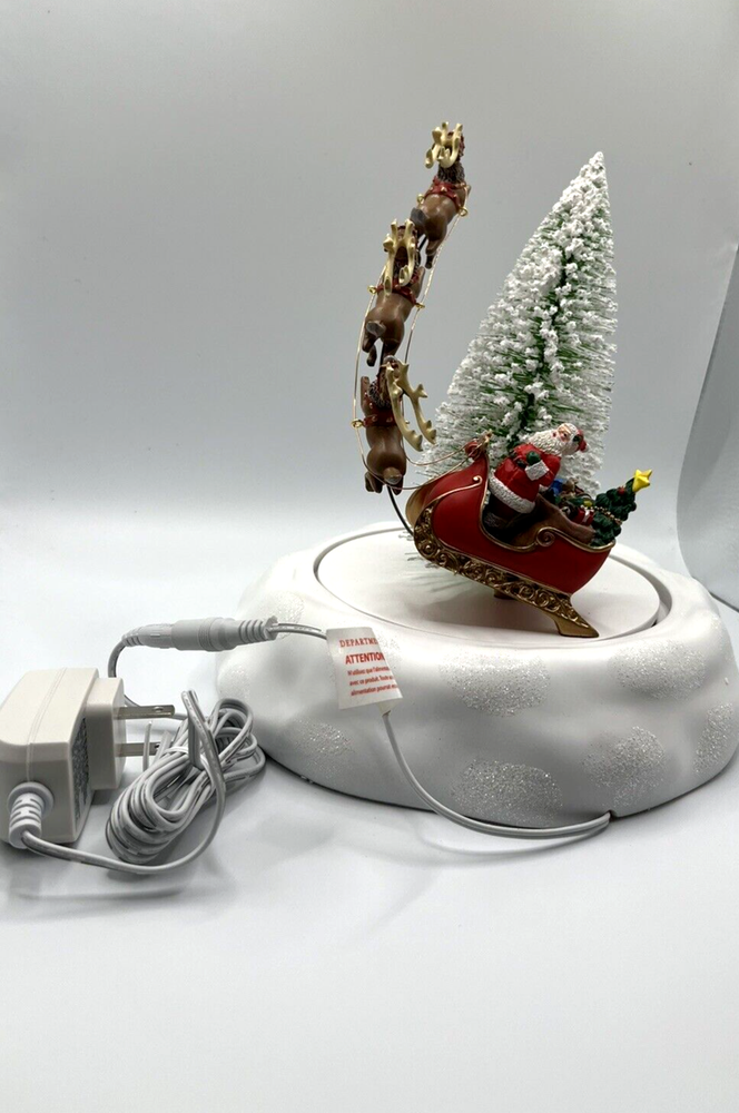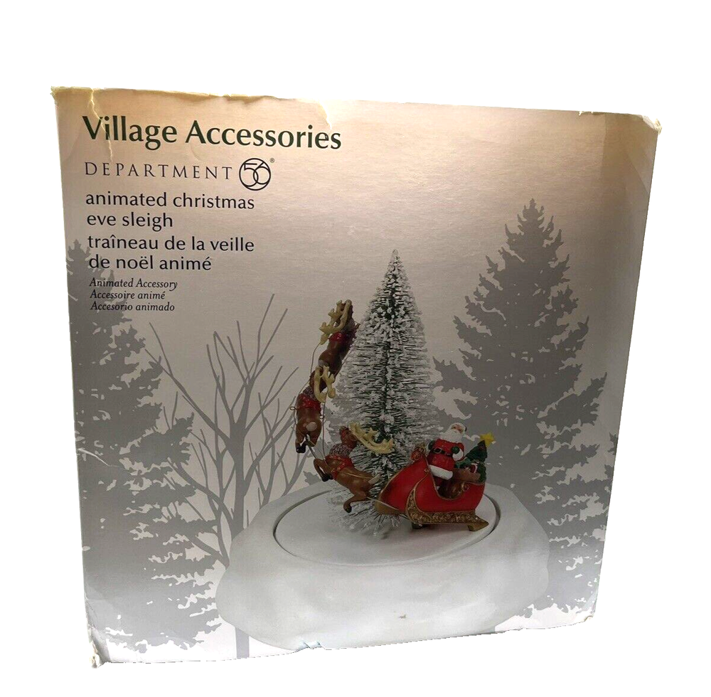 Department 56 Village Accessories - Animated Christmas Eve Sleigh style: 6009801 This beautifully detailed animated piece features Santa and his reindeer taking off for his long ride on Christmas eve delivering presents to good little children around the world. 8.46" L x 8.46" W x 9.06" H Designed in the USA, by the village artists at Department 56 Handcrafted hand painted, with the detail that makes Department 56 famous Department 56 village general accessory Includes AC Adapter New in box - some wear to box from pallet as shown in photo Works well -see video