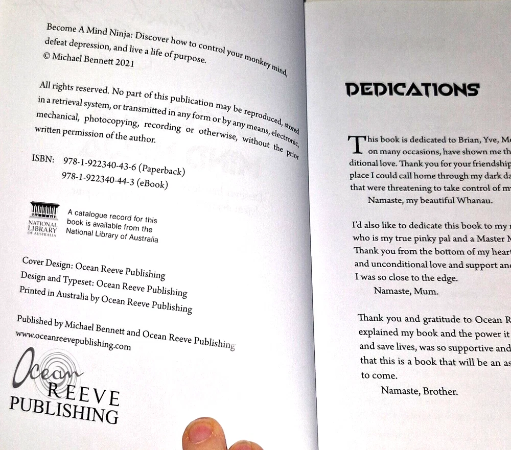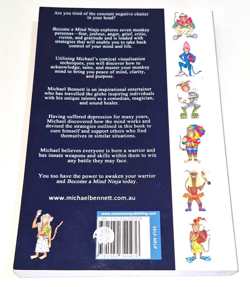 Become a Mind Ninja by Michael Bennett (Signed) Discover how to control your monkey mind, defeat depression and live a life of purpose. Condition:- The book is in good pre-owned condition. It is signed by the Author Michael Bennett on the Title Page with an inscription that reads Gratitude Free, You are an Earth Angel "Keep the Faith Sister", Namaste M Bennett. The softcover has some minor edge and corner wear and a partial small sticky dot label on the back cover which has been partially removed. The external page edges have some minor marks. Free Shipping Australia Wide Sent with tracking to ensure safe delivery Worldwide Shipping Available (please message for an accurate quote - I am happy to combine shipping to lower the expense) Returns Accepted 100% Australian Owned and Operated All Books in Stock Quality Books at Great Prices Please message if you have any queries I am happy to help When you purchase a book from Love Finds a Home you are helping an Aussie Mum care for her family and I am very grateful. #7/4 4/10/24