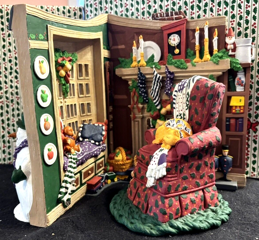 Embrace the warmth and whimsy of the holiday season with Department 56's "All Through The House" collection. This charming piece features a cozy corner with a cat asleep on a chair next to a roaring fireplace, capturing the essence of a tranquil Christmas Eve. The resin figurine, matte finished, and hand-painted details boast a quaint Victorian style that adds a touch of nostalgia to your festive decor. Crafted in the Philippines, the item weighs more than 6 lbs and comes boxed, making it a substantial yet manageable addition to your collection. It's a medium-sized, original piece that has been retired, ensuring its uniqueness and value. The multicolor design reflects the joy and comfort of the Christmas occasion, perfect for adults who appreciate a whimsical approach to holiday traditions. Item weighs almost 7 pounds. That is why shipping seems high All my items ship out the same or the next day carefully packaged Please check my store for many other Dept 56 items I combine shipping whenever possible