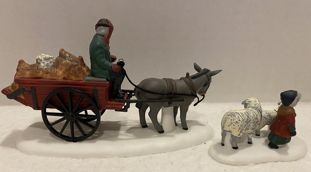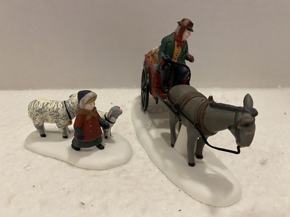 Dept 56 Bringing Fleeces to the Mill Set of 2 Porcelain Accessory #5819-0. Please see pictures for full description. Please note that the whip has broken off from the drivers hand, otherwise in perfect condition Bin U