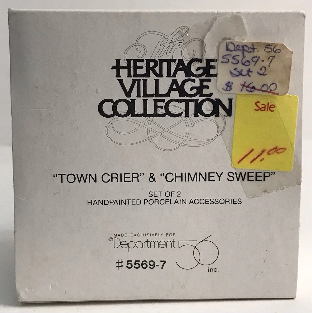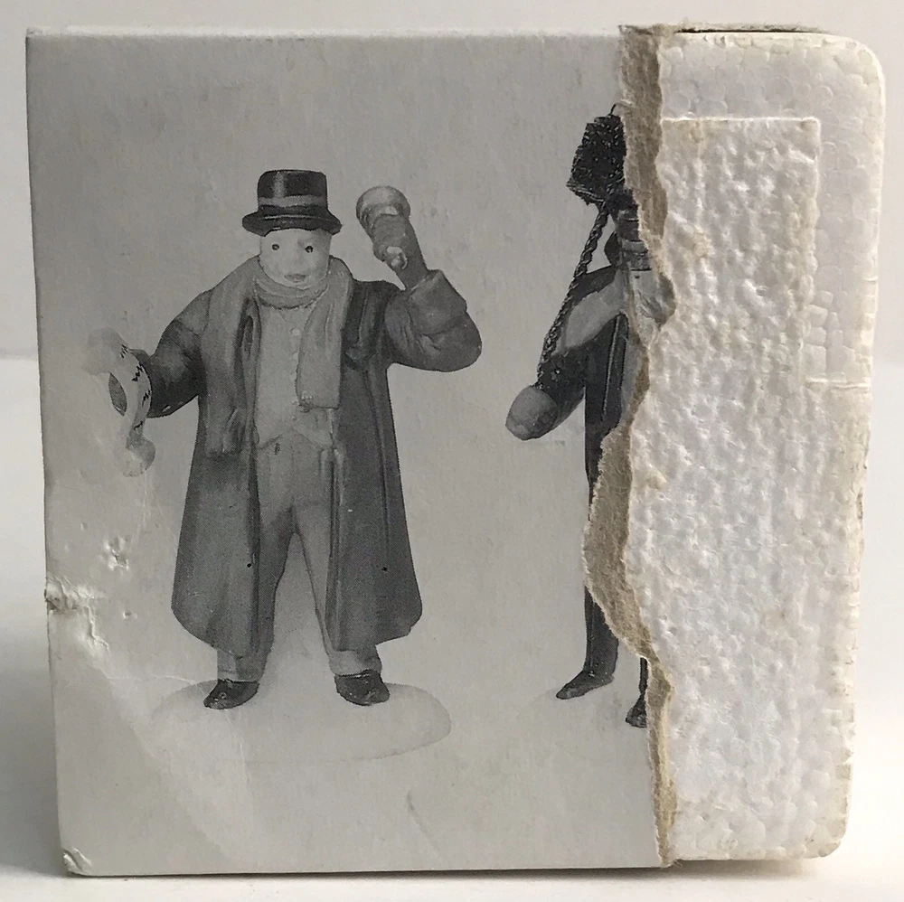Dept 56 Christmas Village Town Crier and Chimney Sweep 5569-7 *Read* Figures are in good condition. The box has some damage. Please see photos for condition details.