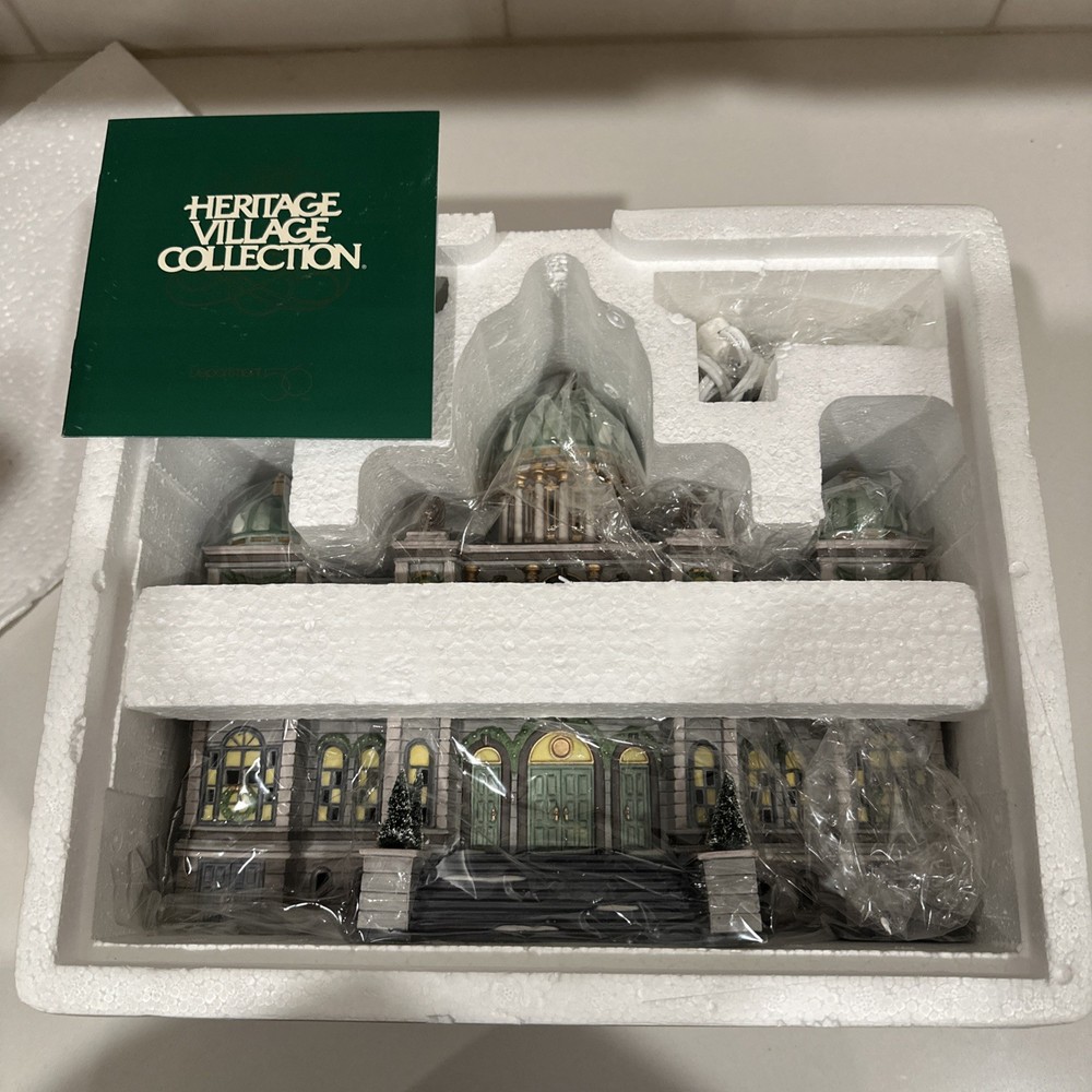 The VTG Department 56 Christmas in the City The Capitol Building 58887 is a brand new in box Christmas village house from the Christmas in the City collection. This lit house features a city-themed design, perfect for collectors of holiday decor. With its vintage appeal and being retired in 1998, this piece adds a nostalgic touch to any holiday display. The modified item showcases intricate details and is a must-have for fans of Department 56 collectibles.