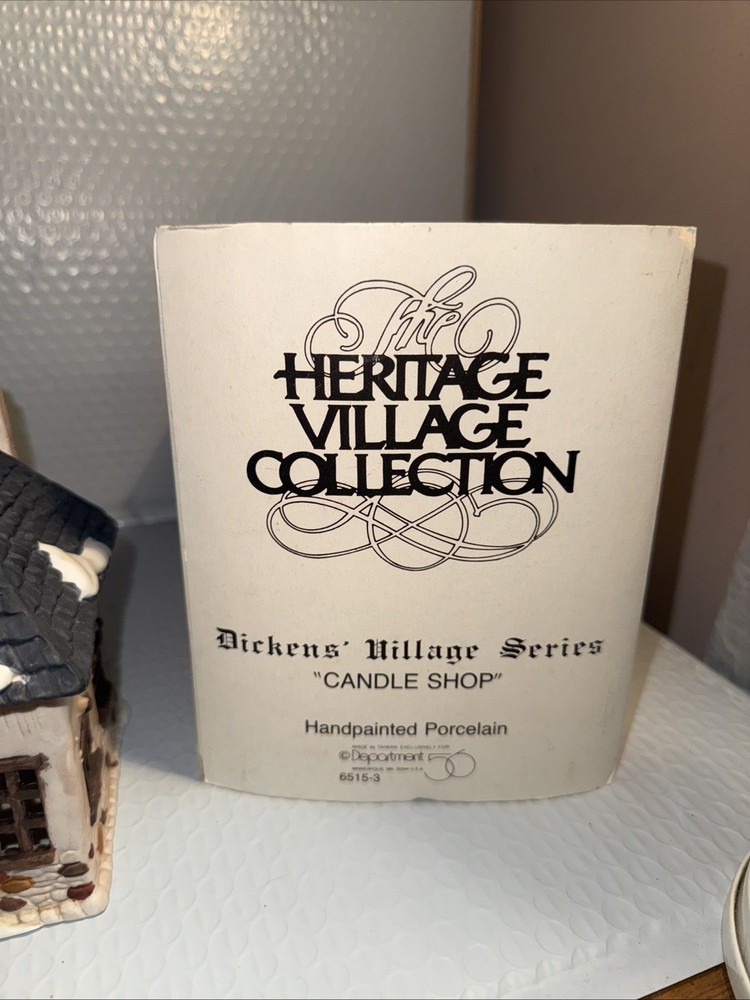 We Strive for nothing less than 5 Star FeedBack and 100% satisfied buyers! If for any reason you are not completely satisfied with your purchase before leaving feedback Please contact us with any questions or concerns. Dept 56 Dickens’ Candle Shop #6515-3 Christmas Village 1984 - Original Box Condition: MINT ORIGINAL BOX NO LIGHT condition see photos original . If there is anything wrong with the item or not as described, please contact me as soon as possible. Item is for sale as it came to us. All items pictured are included in auction. No other accessories are included in auction. please read our descriptions and check our pictures for the best item explanation before purchase. Please read the item description and look at the photos carefully before bidding We will describe the item to the best of our ability. PLEASE ASK QUESTIONS PRIOR TO BIDDING. WE WILL BE MORE THAN HAPPY TO ANSWER QUESTIONS THE BEST WE CAN Buyer assumes responsibility for all shipping and processing charges. THIS AUCTION IS FOR 1 (one) item unless otherwise specified. Bchanes27 reserves the right to end any auction at anytime! All of our items will typically ship within 1 Business day After payment is confirmed. WE ONLY ACCEPT PAYMENT THROUGH PAYPAL AND ONLY SHIP TO U.S. ADDRESSES Except Hawaii, Alaska and Puerto Rico. Be sure to check out our other items and save us as a favorite seller! Keep an eye on our auctions, you never know what we might have! We appreciate you looking at our items, Good luck and Happy Bidding