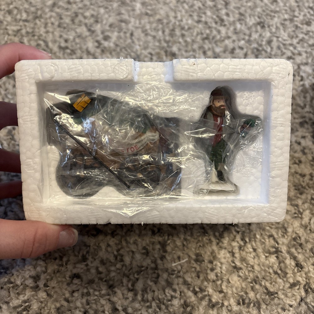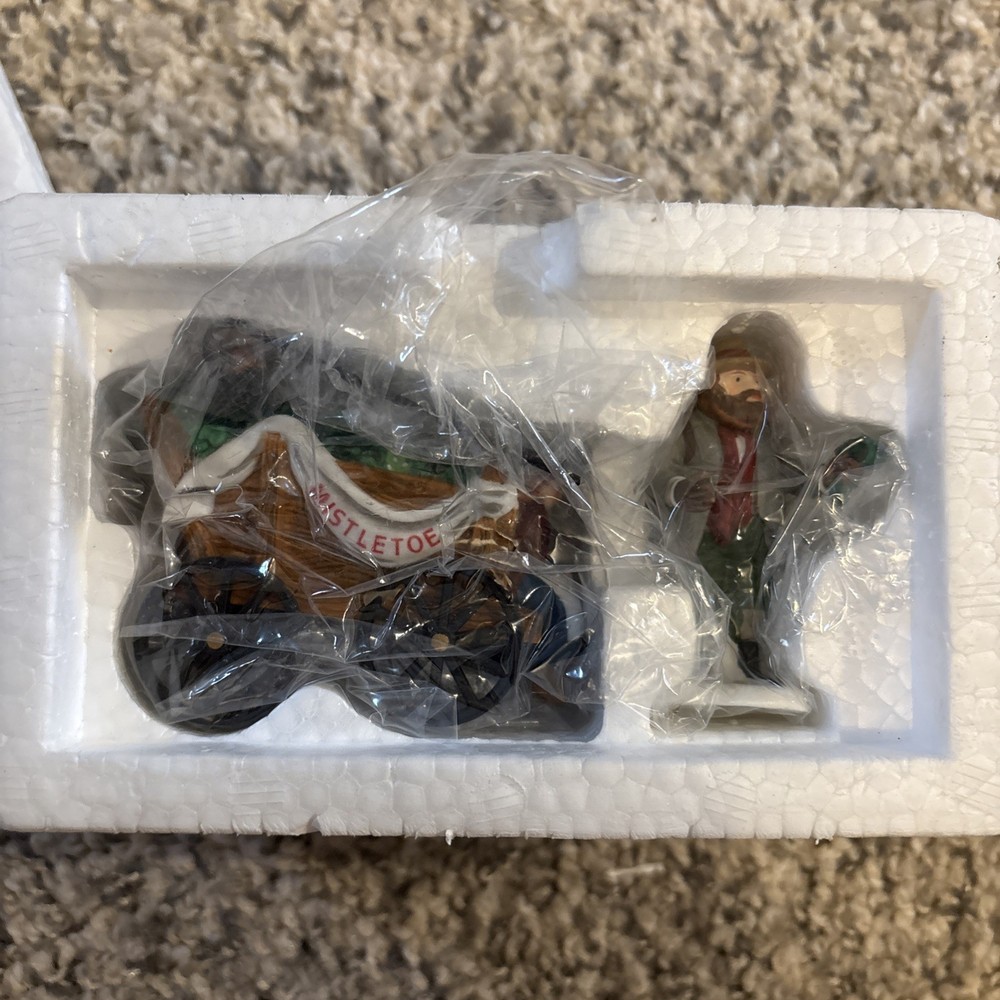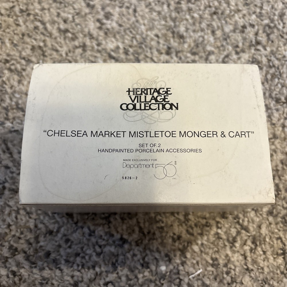 The Dept 56 Dickens Village Chelsea Market Mistletoe Monger & Cart is a collectible Christmas village piece from Department 56's Heritage Village collection. Hand-painted porcelain and ceramic materials are used to create a Seasonal theme that captures the essence of Christmas villages. This original piece, manufactured between 1990-1999, weighs 5 oz and adds a charming touch to any room setting, making it a delightful addition to any holiday decor collection. In original packaging