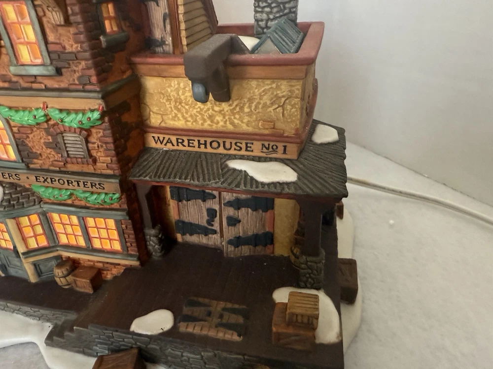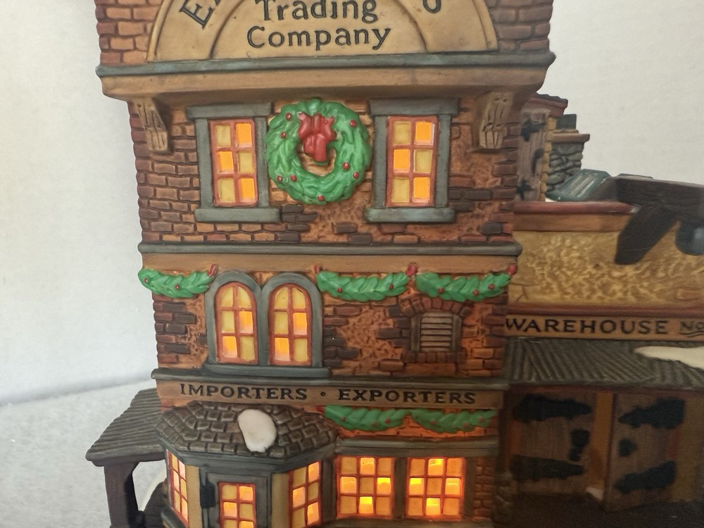 Item is in good preowned condition, demonstrates mild wear. Box demonstrates wear. Please see pictures for full description. Dept 56 Dickens' Village Series "EAST INDIES TRADING CO." #58302 W/ Box & Light Bin JJ