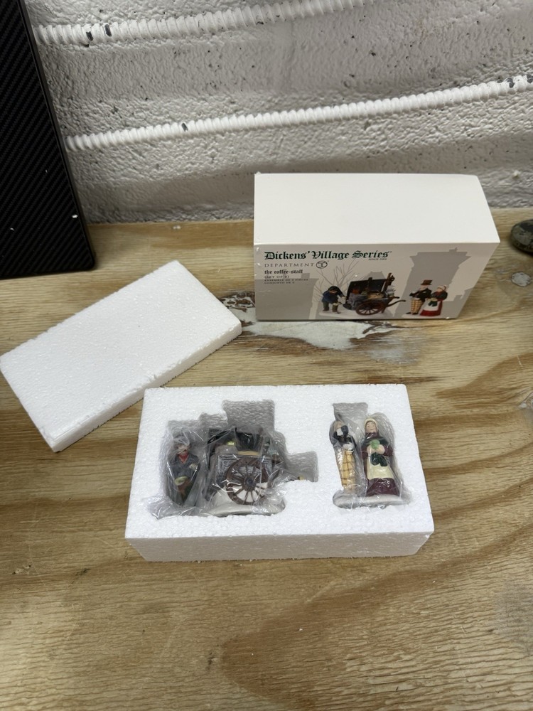 Dept 56 #58571 β The Coffee Stall β Dickens Village β The Heritage Village Collection βπ Add warmth and charm to your Dickens Village display with The Coffee Stall by Dept 56. This detailed accessory captures a cozy Victorian-era coffee stand, perfect for bringing life and character to your holiday village scene. Details: β Collection: Dickens Village Series β Item #: 58571 β Series: The Heritage Village Collection β Includes original figurine/accessory piece (no light or cord) β Made of hand-painted porcelain π― Condition: Piece is in great condition with no chips or cracks Comes in original Dept 56 packaging with fitted foam insert Box may show light shelf wear See photos for exact condition π A charming and collectible piece for any Dept 56 or holiday village fan π Fast Shipping & Secure Packaging! Thanks for looking! β RetroMementos