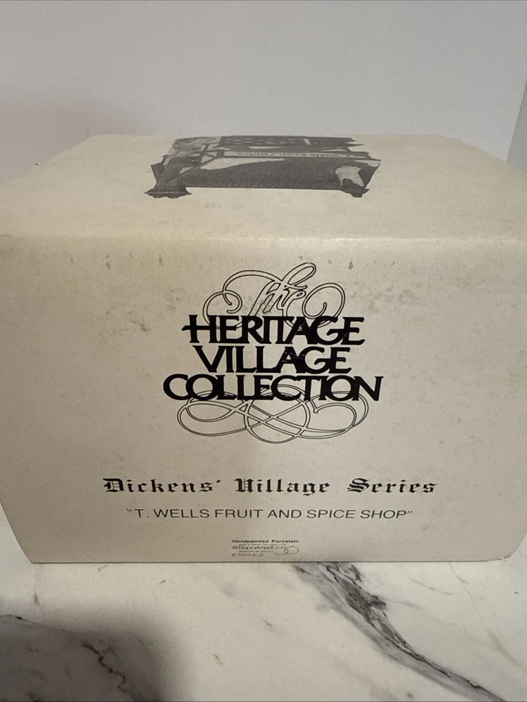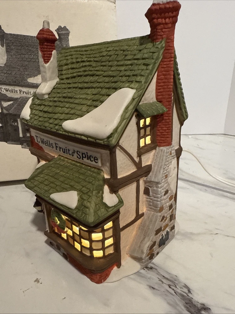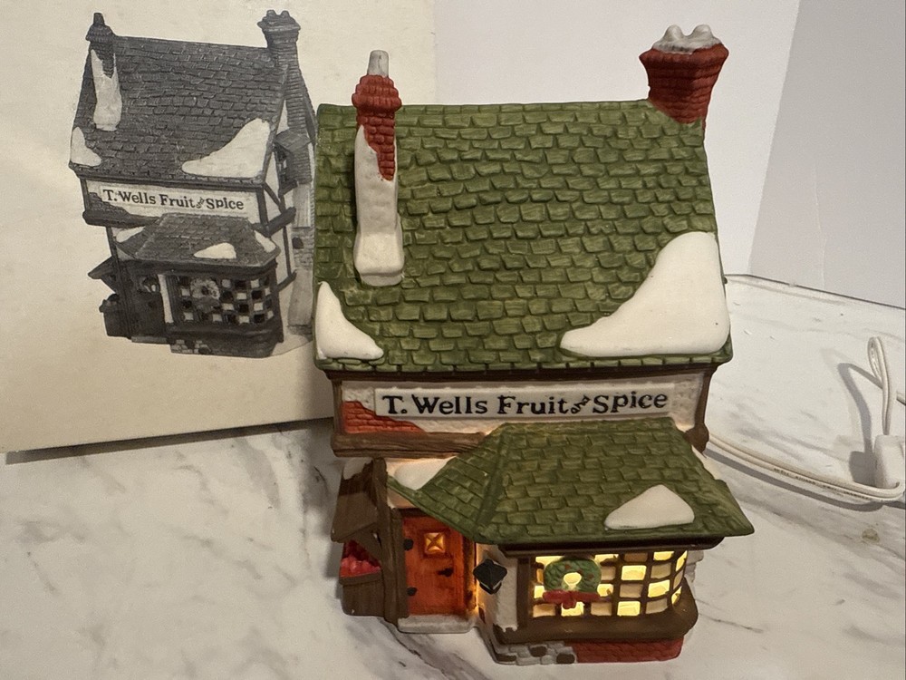 Dept 56 Dickens Village - T. Wells Fruit Spice Shop - Vintage 1988 5924-2 READ Pre-Owned in very good condition. Note: The cardboard sleeve for foam box is damaged. See all photos for best representation. Thank you for liking and supporting my small business!