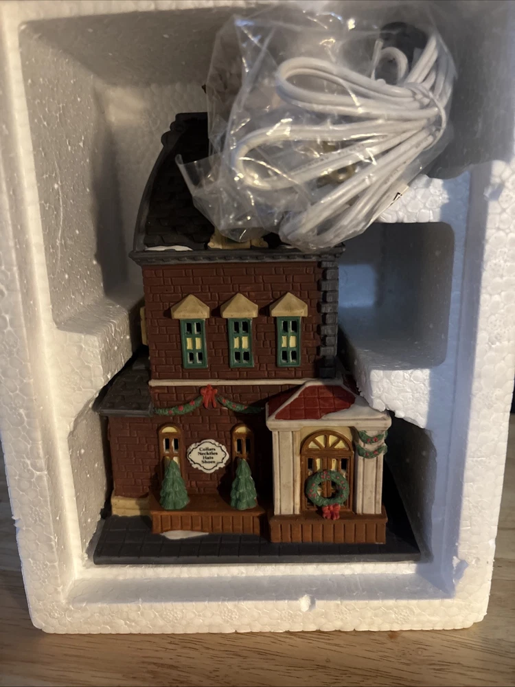 Add a charming touch to your holiday decor with this exquisite piece from the Department 56 Heritage Village collection. The Christmas In The City series features the "Haberdashery" #5531-0, a beautifully crafted ceramic and porcelain building that boasts intricate hand-painted details and a classic matte finish. This medium-sized, asymmetrical piece is suitable for any room and is designed to bring the festive spirit of Victorian-era cities into your home. With its multi-color design and illuminated features, this Christmas Village piece is perfect for creating a warm and inviting atmosphere. It comes boxed, making it an ideal addition to any collection or as a thoughtful gift for adults who appreciate traditional style and seasonal themes. Celebrate the holidays with this timeless treasure that captures the essence of the season.