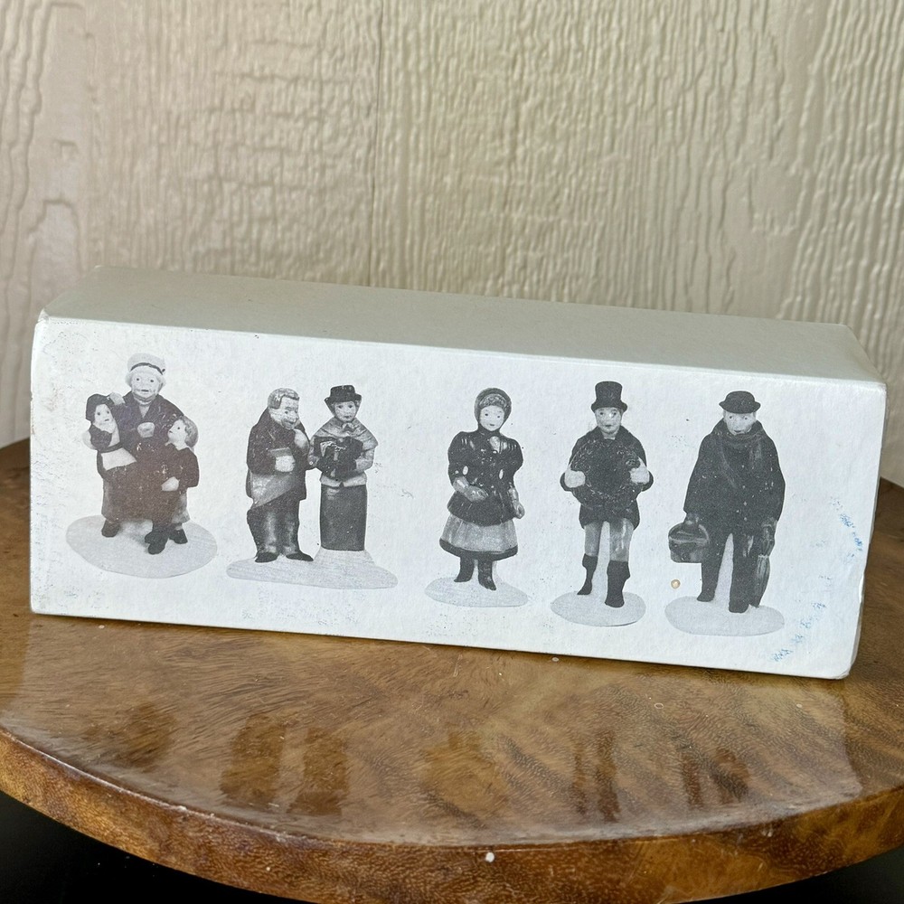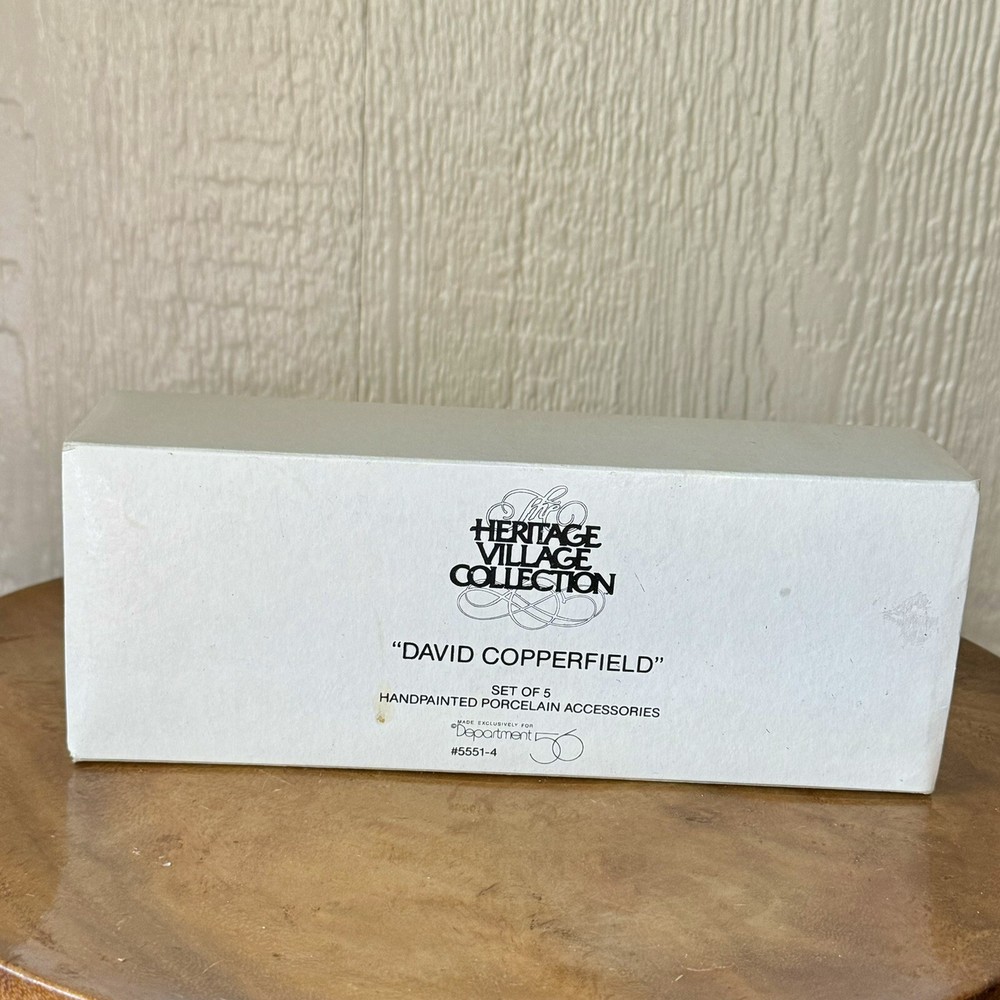 This Dept 56 Heritage Village Collection Christmas Village set features David Copperfield and comes in its original box. The set includes five small, multicolored figures made of ceramic and porcelain, with a matte finish. The set is signed and is an original piece from the Heritage Village collection. The set is perfect for collectors or for adding a touch of Victorian Christmas spirit to your holiday decor. The set is categorized under Collectibles, Holiday & Seasonal, and Villages & Houses. Get ready to add a charming piece to your collection with this Department 56 Christmas Village set.
