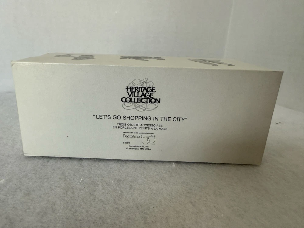 Pieces are in excellent preowned condition, no defects noted. Please see pictures for full description. Box demonstrates mild wear. Dept 56 Heritage Village Let's Go Shopping In The City #58899 W/ Box 3 Figures