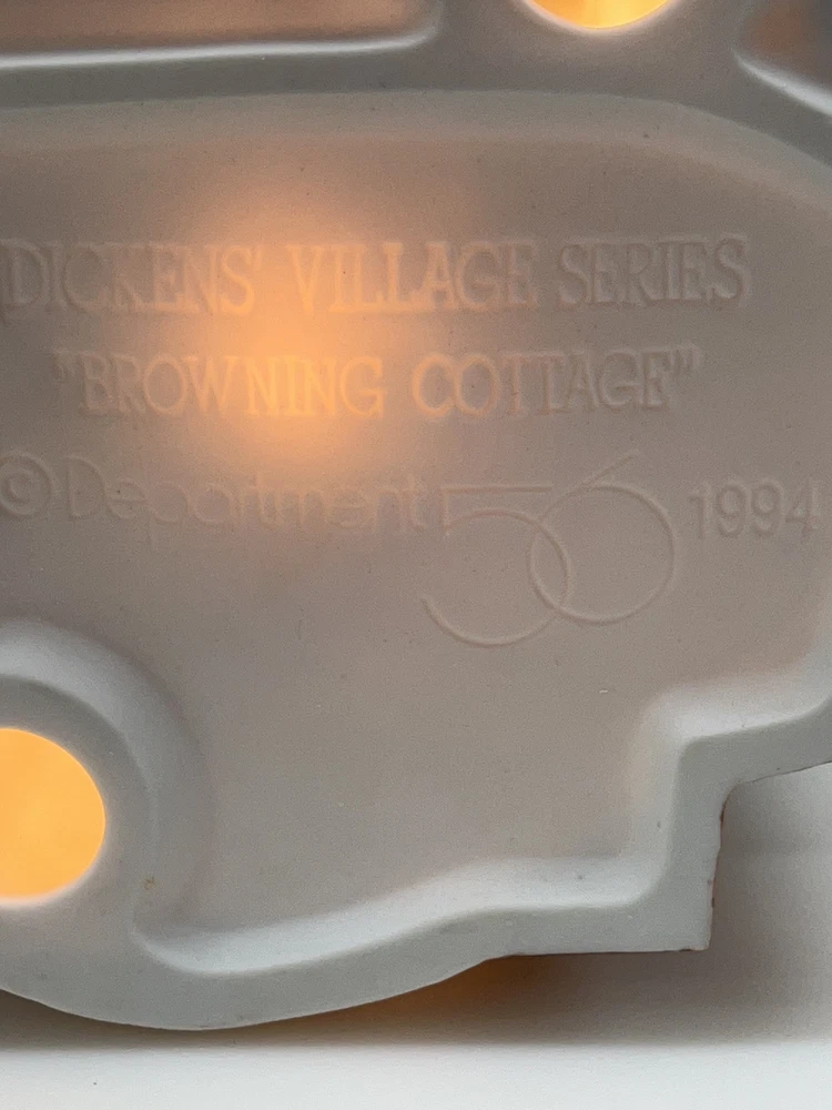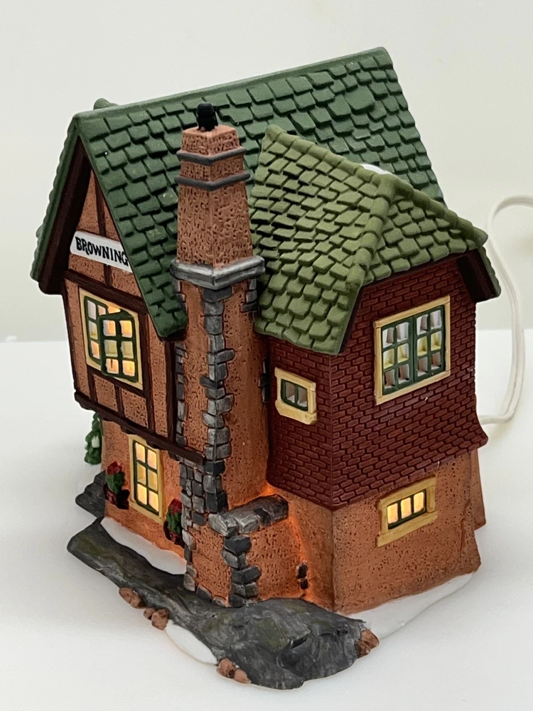 Size: Medium Original/Reproduction: Original Color: Brown Character: Browning Cottage Number in Pack: 1 Character Family: Lighted House Suitable For: Village Display Shape: Asymmetrical Type: Christmas Village Subject: Cottage Department: Adults Brand: Department 56 Material: Ceramic & Porcelain Pattern: Whimsical Country/Region of Manufacture: China Finish: Painted Era: Late 20th Century (1970-1999) Theme: Seasonal Item Length: 7” Features: Retired, Boxed, Illuminated Occasion: Christmas Artist: Dept 56 Room: Any Room Packaging: Box Time Period Manufactured: 1990-1999 Item Width: 5” Item Height: 6” Collection: Dickens Village Year Manufactured: 1994 Style: Victorian