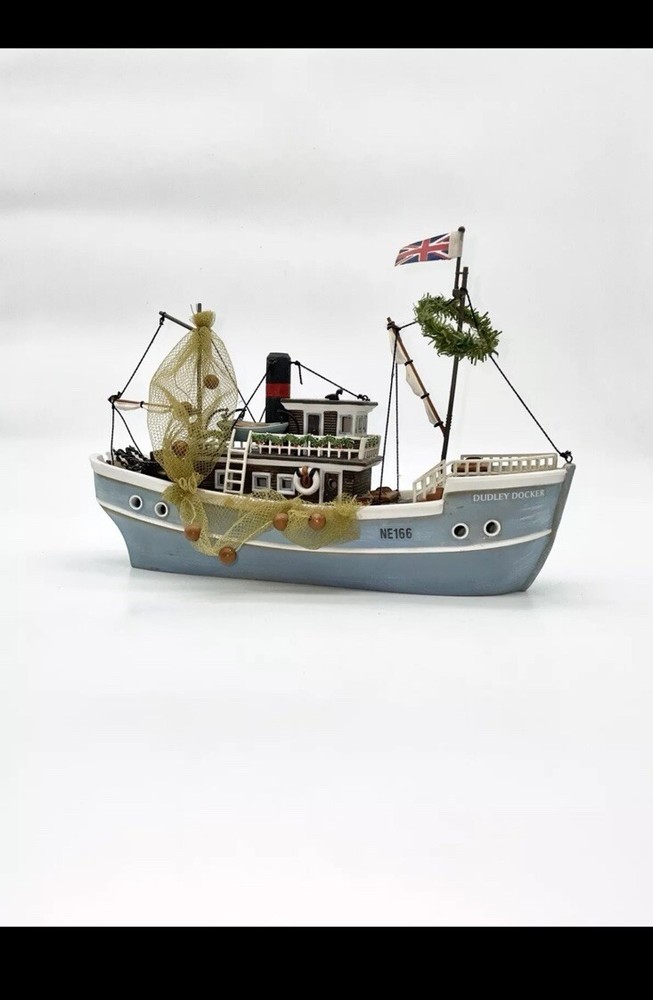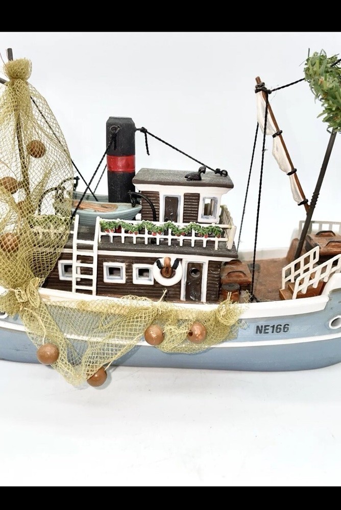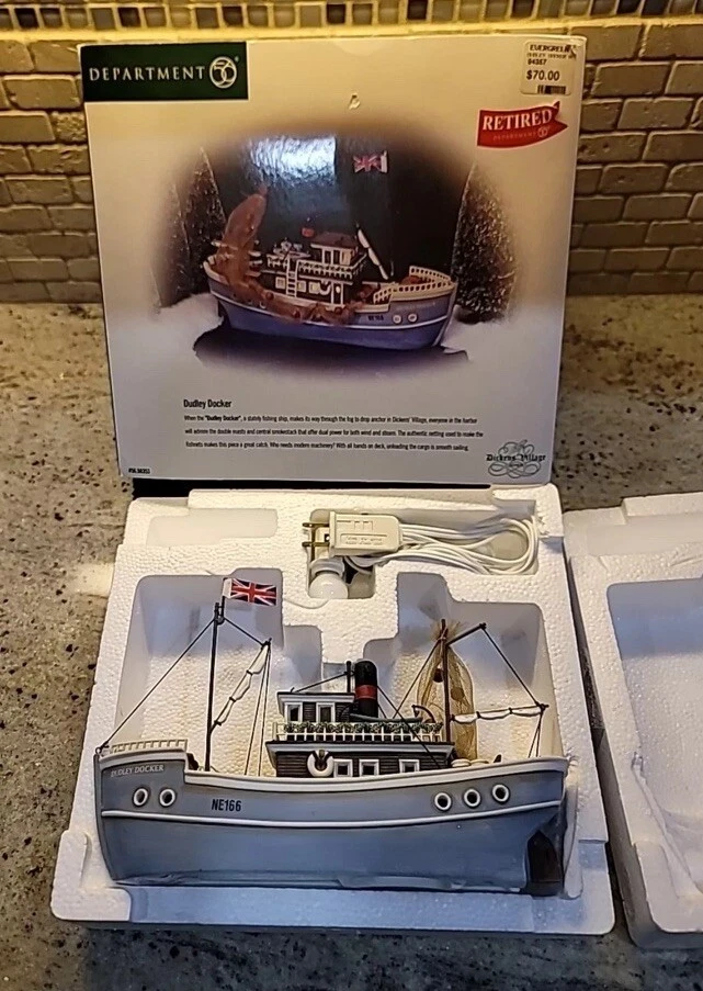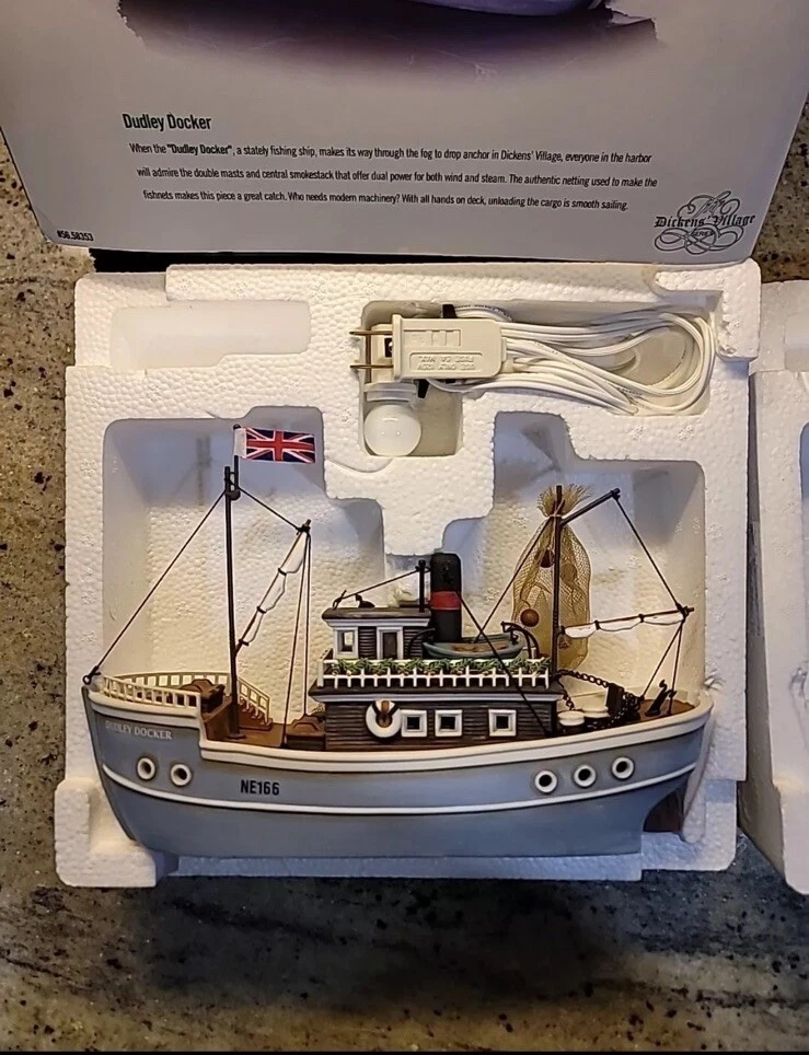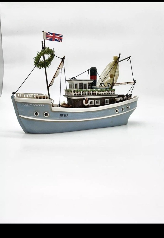 This Dept 56 piece features a charming fishing ship design from the Dickens Village collection. The ceramic and porcelain construction makes it a sturdy addition to any room's decor, while the asymmetrical shape and multicolor design add visual interest. The piece is perfect for all occasions, with a nautical and seasonal theme that will appeal to teens, adults, and kids alike. The Dudley Docker 58353 piece was manufactured in 1999 and is now retired, making it a valuable addition to any collector's inventory. It is suitable for display in any room, and its features include a range of characters from the Dept 56 family. Whether you're a seasoned collector or just starting out, this piece is sure to delight.