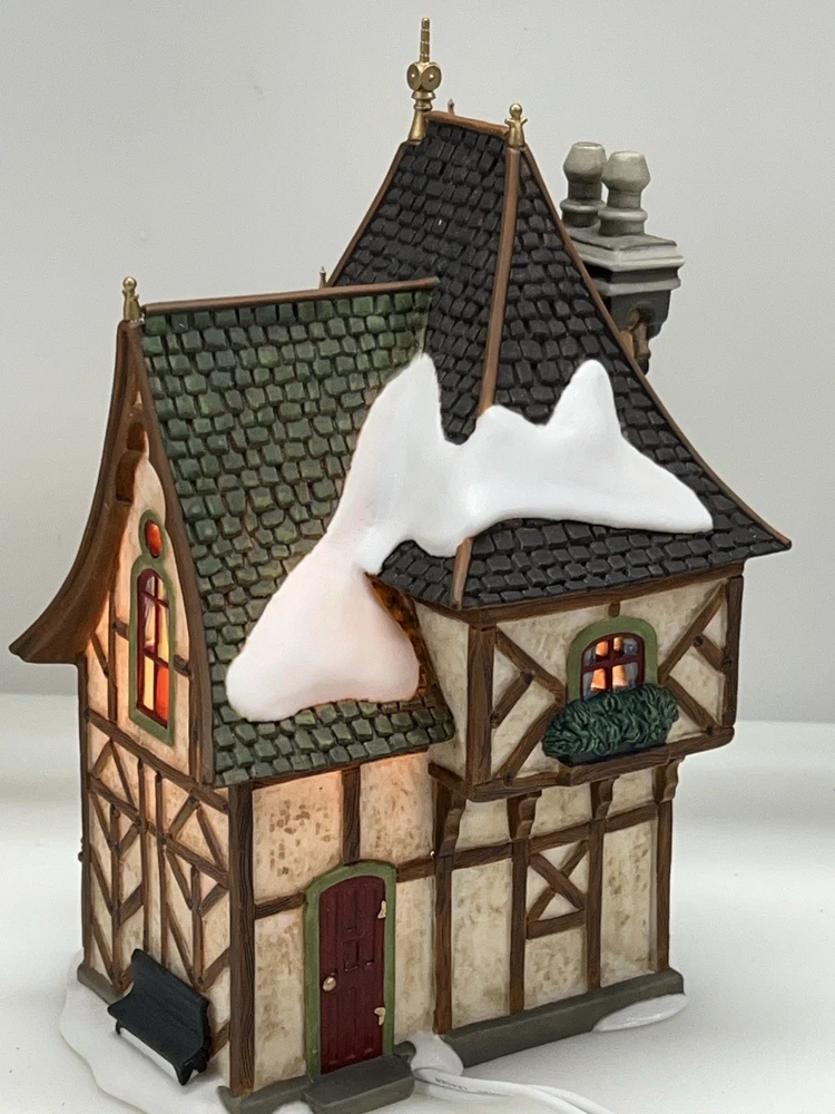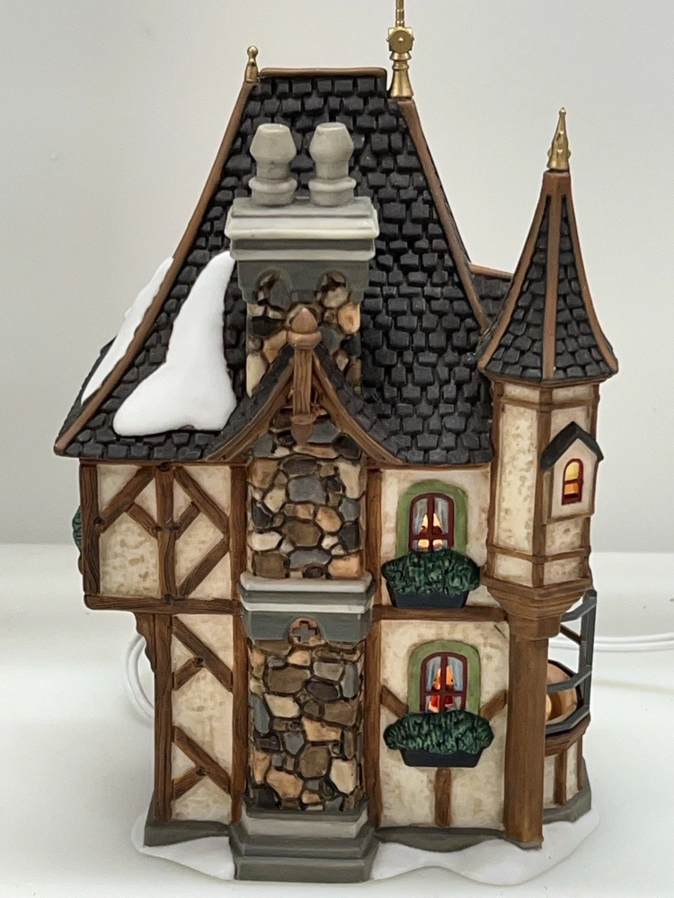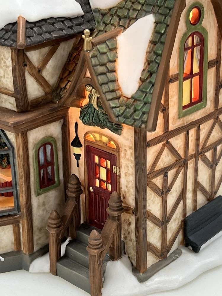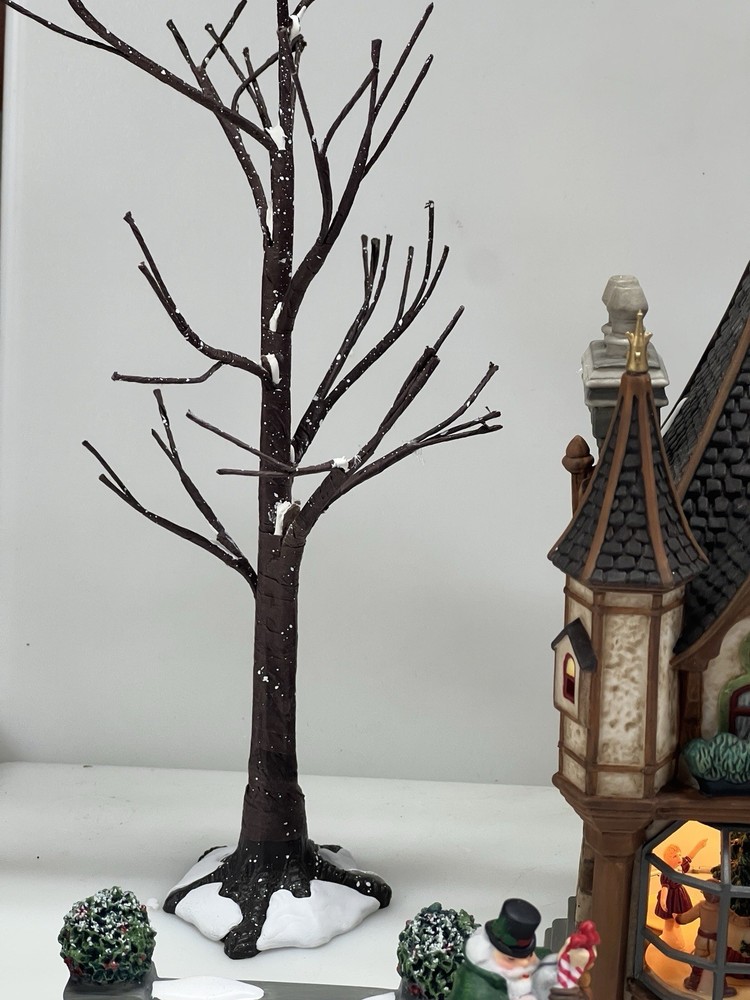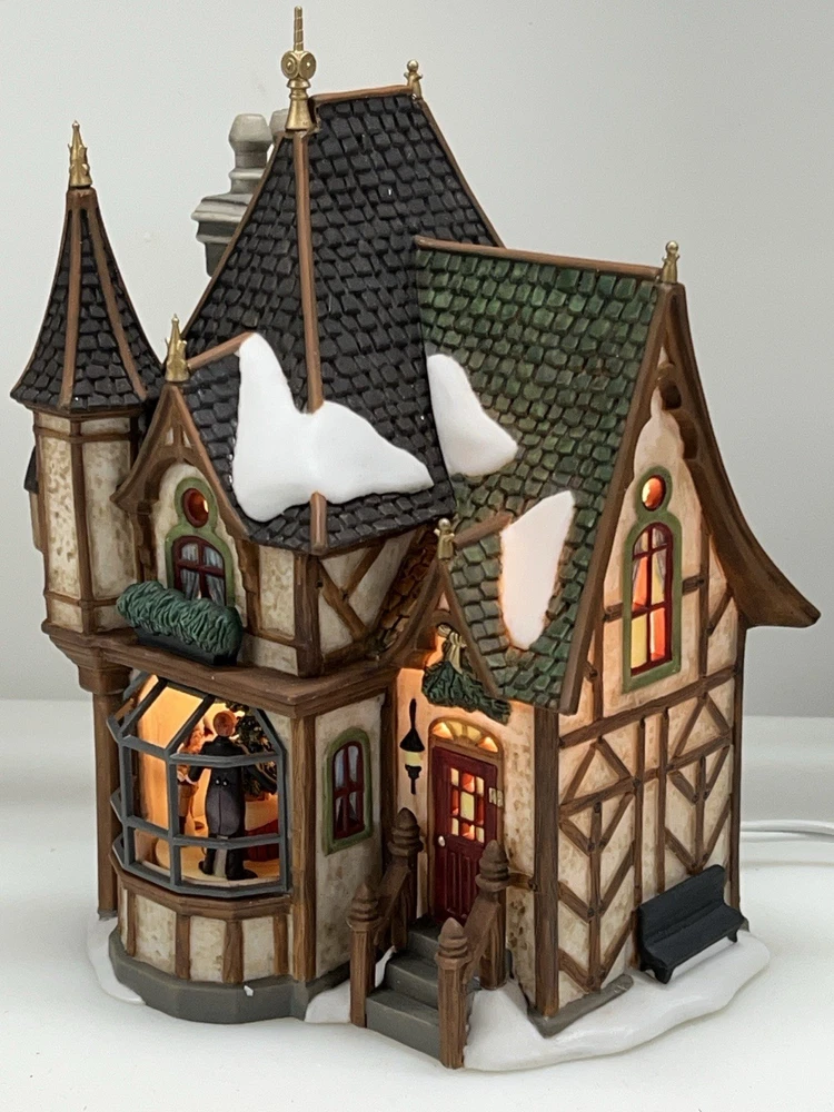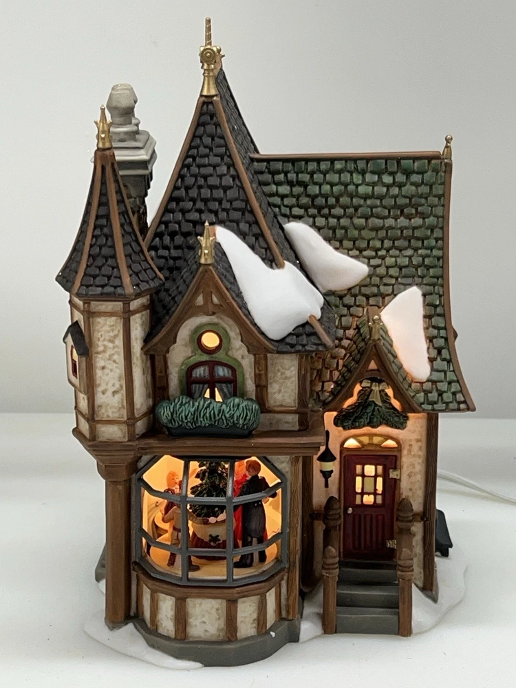 This is a Department 56 "1 Royal Tree Court" Holiday Gift Set of 8, designed by Neilan Lund in 2002. The set features an asymmetrical, medium-sized, multi-colored porcelain village display, suitable for any room and occasion. The set includes 8 pieces, each measuring 8" in height and 5" in length and width, with a whimsical Victorian home pattern and lighted house character family. The set is an original, 21st century (2000-now) product, manufactured in China, and is part of the Dickens Village collection. The set is perfect for collectors and enthusiasts who enjoy seasonal, periods and styles, and novelty themes. 8 piece set in absolutely perfect condition: House Two river stone walls Two frosted topiaries Bare branch tree One bag fresh fallen snow One figurine Comes with all original packaging including cord and light Outer box is taped .