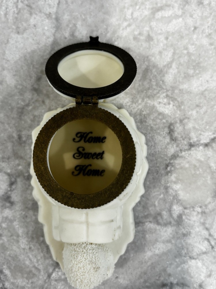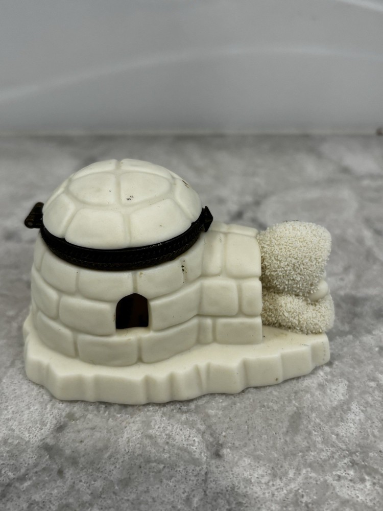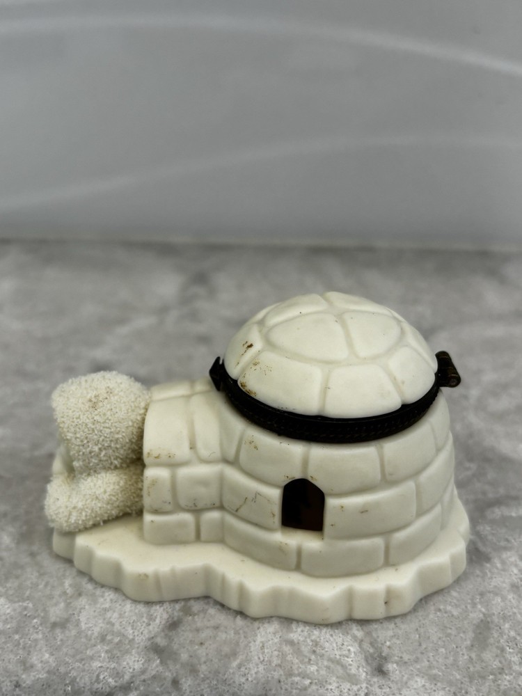 Department 56 Snowbabies igloo trinket box. “Home Sweet Home” is printed inside the box. It measures approximately 3 1/4”x2”x2 1/2”. Preowned. Good condition. Some small marks as shown in pictures.
