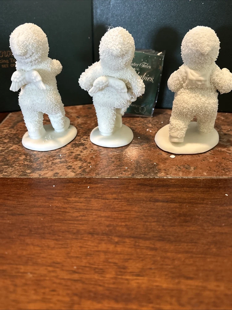 Add a touch of winter magic to your collection with the Department 56 Snowbabies "Dancing To A Tune" set of 3 figurines. Each piece showcases the charm and intricate detail that the Snowbabies line is known for, with angels adorned in bisque hues and textured finishes that evoke a sense of seasonal wonder. With the original packaging, these asymmetrical figurines are a testament to the traditional style and quality craftsmanship of the 1990s. Whether displayed on a mantle or as part of a larger Snowbabies ensemble, they're sure to be a delightful addition to any holiday decor.