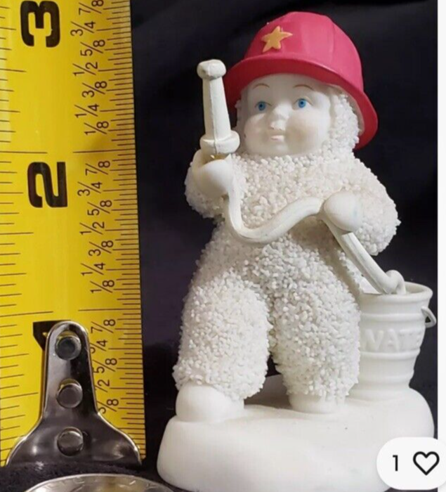 The Dept 56 Snowbabies Figurine is a 3-inch tall figurine featuring a baby Snowbabies character dressed as a firefighter or fireman, titled "To The Rescue." It is part of the Snowbabies collection by Department 56, manufactured in China in 2002. The figurine is white in color with a textured finish, making it a charming addition to any Christmas or holiday decor for collectors of figurines and seasonal items. New!!! No BOX