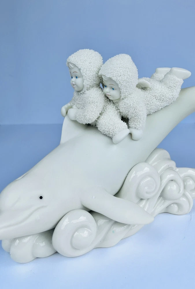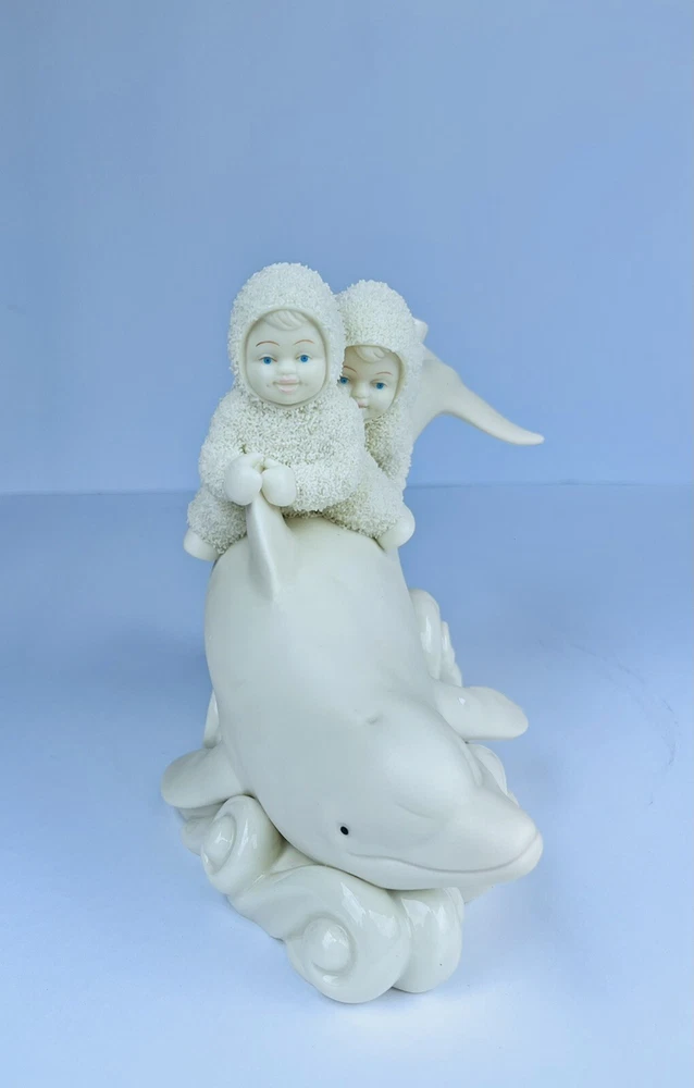 Dept. 56 Snowbabies "Ride the Wave" 56.69057, 2 Babies on Dolphin, 2000. No box Does contain foam box