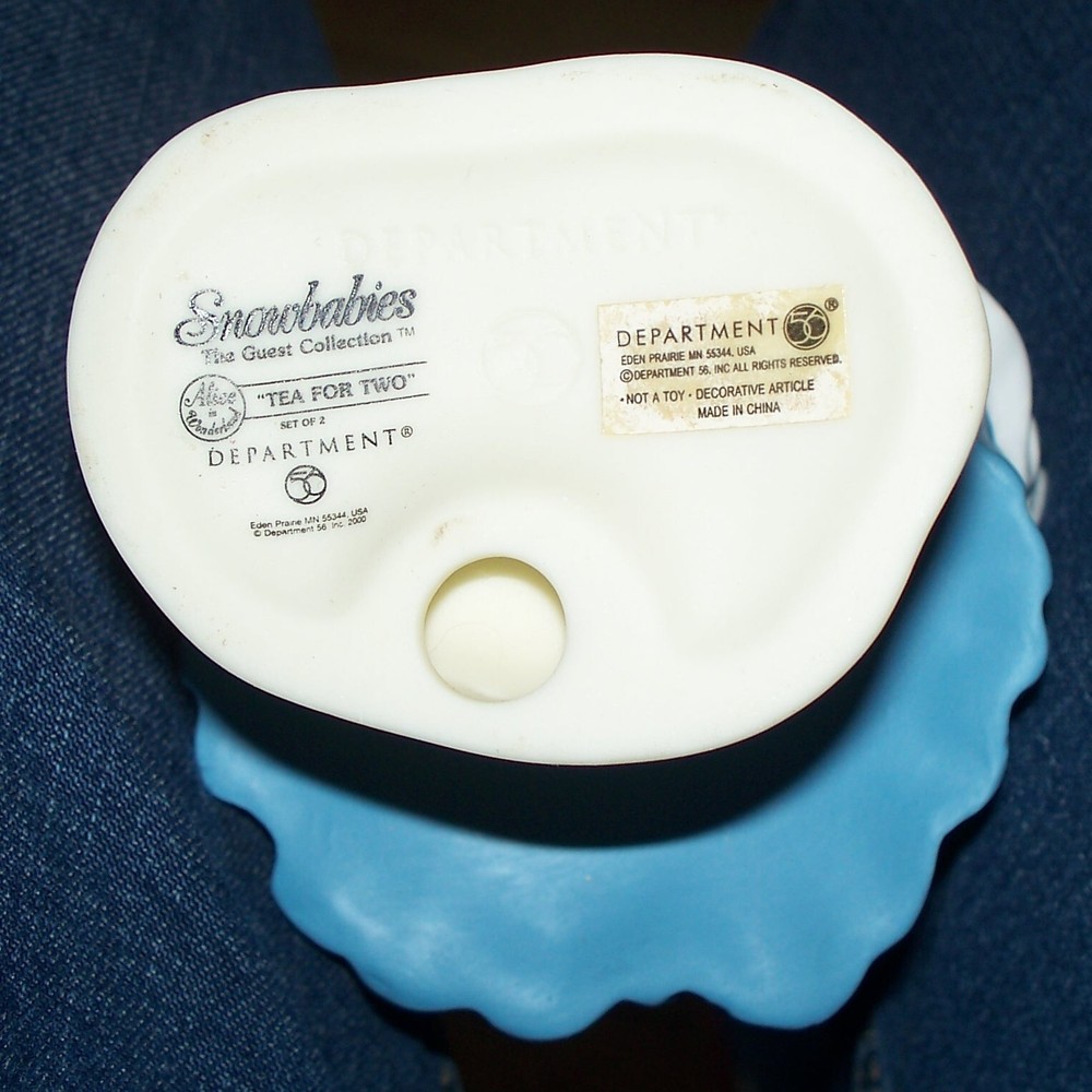DEPARTMENT 56 SNOWBABIES THE GUEST COLLECTION "TEA FOR TWO" RETIRED IN 2001 IN EXCELLENT PRE OWNED CONDITION NO ORIGINAL BOX ALICE IS 6.50" TALL SNOWBABY IS 4" TALL FREE SHIPPING!