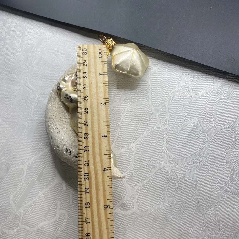 Celebrate the holiday season with this vintage Dept 56 Snowbabies hanging ornament. The ornament features a beautiful all-over white pattern and is made of high-quality glass and mercury glass materials. It depicts a moon and a Christmas tree, perfect for adding to your holiday decor. This retired ornament is from the Night Before Christmas collection series and was manufactured in Poland in the 2000s. It comes with two Snowbabies ornaments, each with stars, and is a great addition to any adult's collection. Get into the contemporary style and enjoy the holiday theme with this lovely Snowbabies ornament.